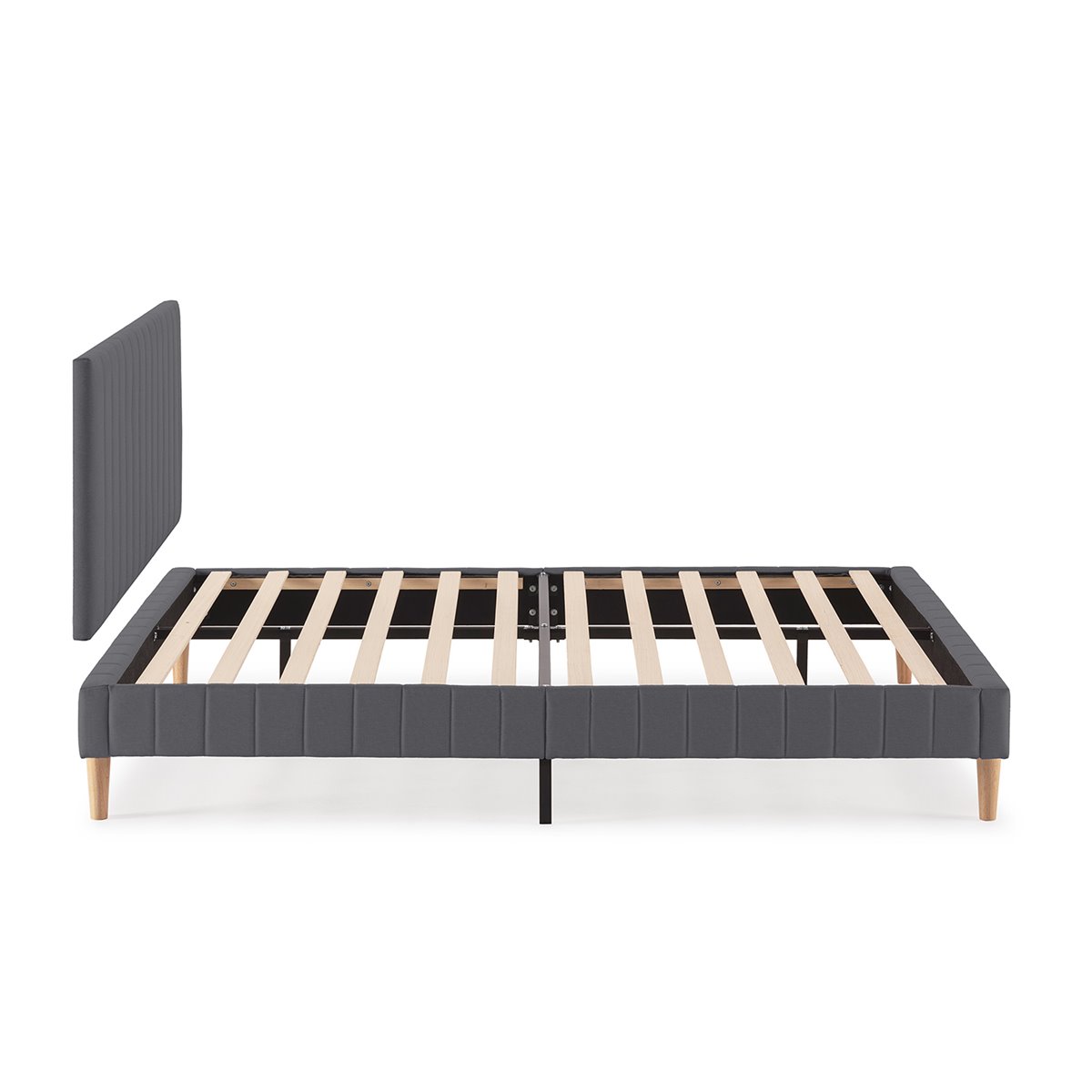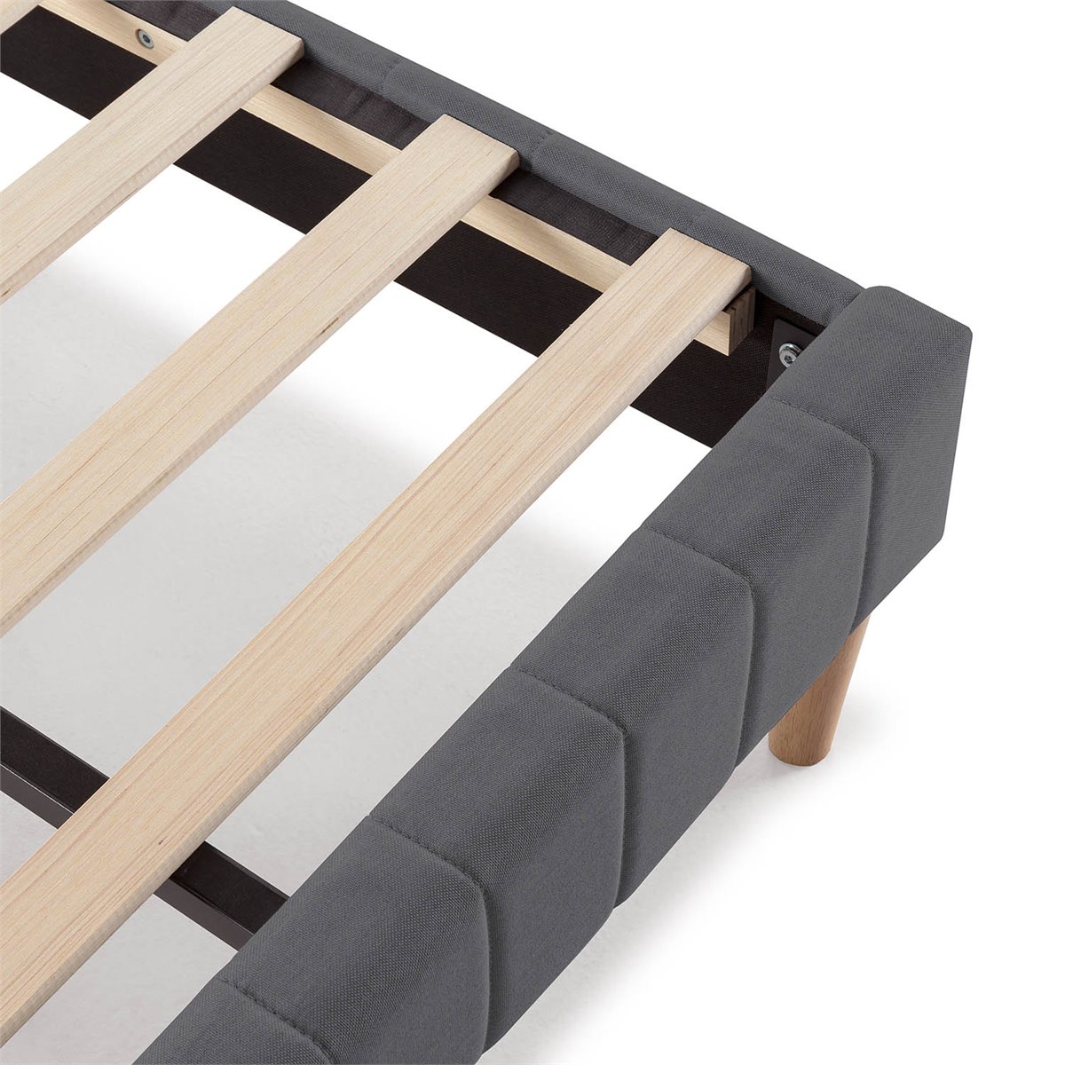 · La base tapizada Eris se compone de lamas de madera y un acolchado de fibra recubierto de un tapizado de tela que es suave y duradero. Gracias a esta composición, esta base tapizada es silenciosa mientras duermes y, además, prolongará la comodidad de tu colchón permitiendo que transpire.