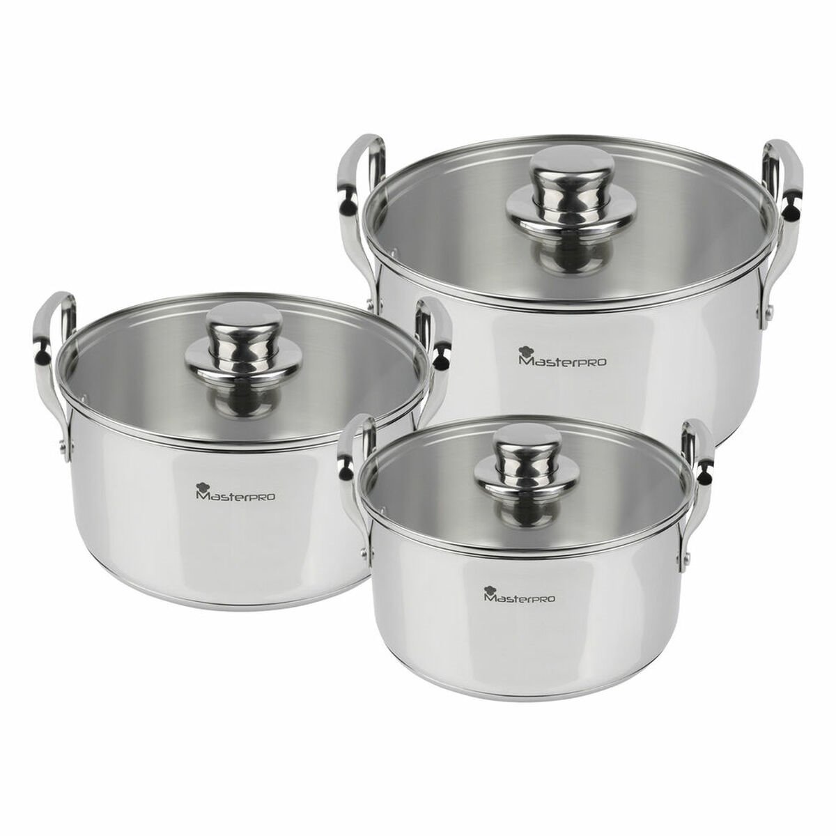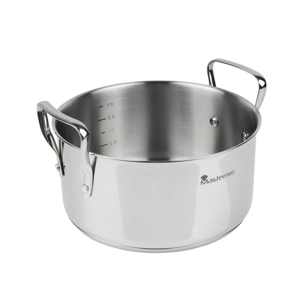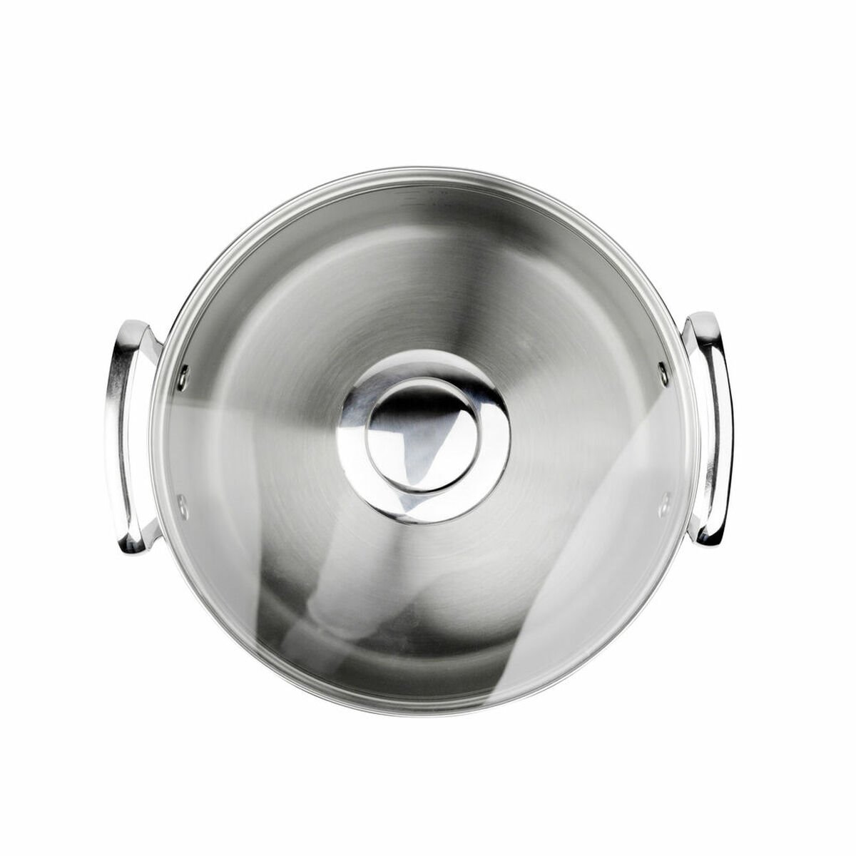 Batería de cocina formada por cacerolas de 20, 24 y 28 cm con sus respectivas tapas, diseñada para ahorro energético y espacio. La batería de cocina a la cual pertenece este utensilio está pensada para un mejor almacenamiento debido a su método de apilamiento de sus ollas, cacerolas y tapas. Está fabricada de acero inoxidable de alta calidad y resistencia, con un diseño que extiende la superficie de inducción, para reducir los tiempos de cocción y mejorar la eficiencia del calor. Dicho ahorro de tiempo resulta, asimismo, en un ahorro energético. Además, a esta cacerola se le incorpora una tapa de vidrio resistente a altas temperaturas con borde de silicona, la cual evita que el calor se filtre desde dentro y permite un cierre correcto y ajustado