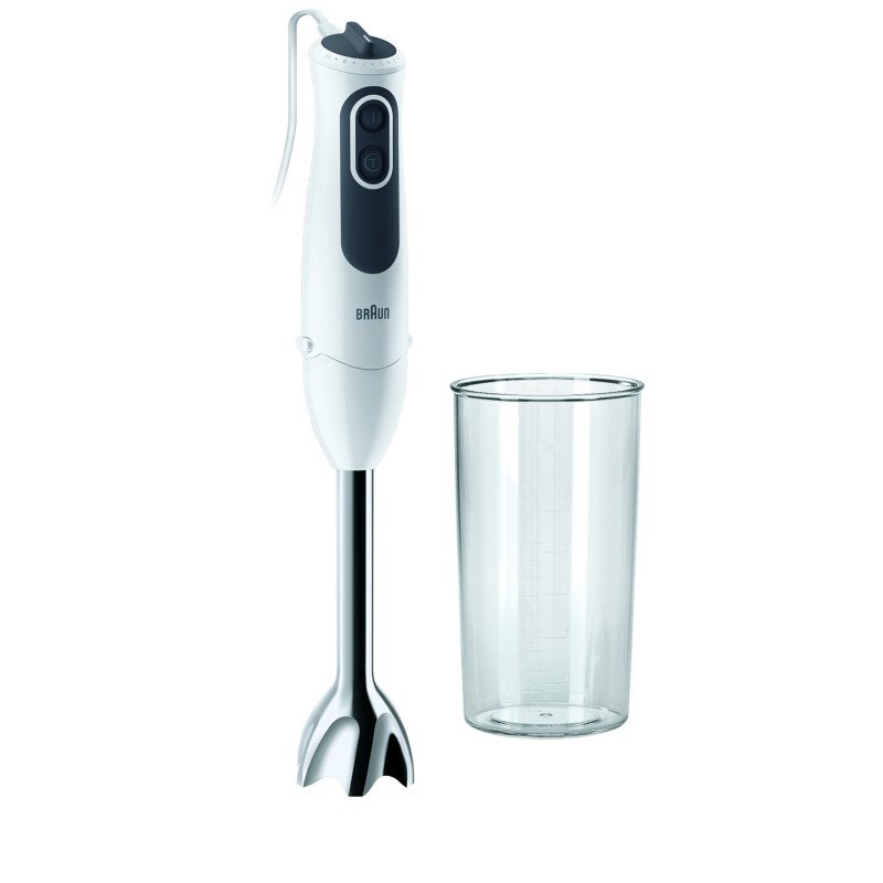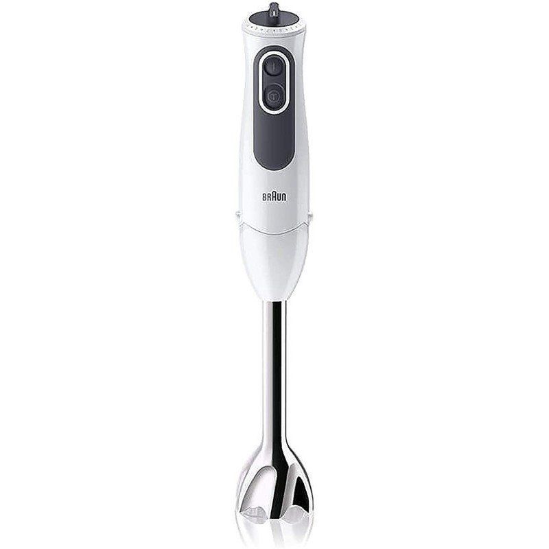 La nueva Braun Minipimer 3 Vario MQ3100WH tiene un potente motor de 750 W y 11 velocidades para obtener unos resultados óptimos de forma rápida y sencilla. La innovadora campana PowerBell Plus aporta una zona adicional de corte con cada rotación, haciendo que su uso sea más rápido y eficiente, por tanto se consiguen mejores resultados con ingredientes más grandes con menos esfuerzo. El diseño de la campana con tecnología SPLASHControl evita las salpicaduras para mantener tu cocina limpia.Características principales:Vaso medidor de 600 ml de plástico BPA-freePotente motor de 750 WEmpuñadura suaveSistema EasyClickAccesorios aptos para lavavajillasTecnología SplashControlEvita salpicaduras – para que ni tu cocina ni tu tengáis manchas.PowerBell PlusCuchilla de picado adicional para ofrecer un mayor corte por rotación y triturar grandes trozos de comida con menos esfuerzo.Ruleta de velocidad variableCon 11 velocidades diferentes entre las que escoger para obtener la máxima precisión. Además, utiliza el modo turbo para resultados más finos en el triturado.Potente motor de 750WPara triturado rápido y fácil.Sistema EasyClickDos botones y un movimiento para cambiar rápida y fácilmente entre todos los accesorios EasyClick.Especificaciones:Marca: Braun HogarNúmero de modelo: Minipimer 3 Vario MQ3100 Smoothie +Color : BlancoDimensiones del producto: 5.3 x 5.3 x 40 cm; 1 kilogramosCapacidad: 600 MililitrosPotencia: 750 vatiosMaterial: Plástico, MetalNúmero de velocidades: 11Peso del producto: 1 kg