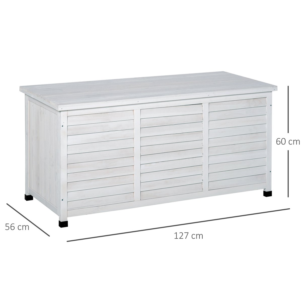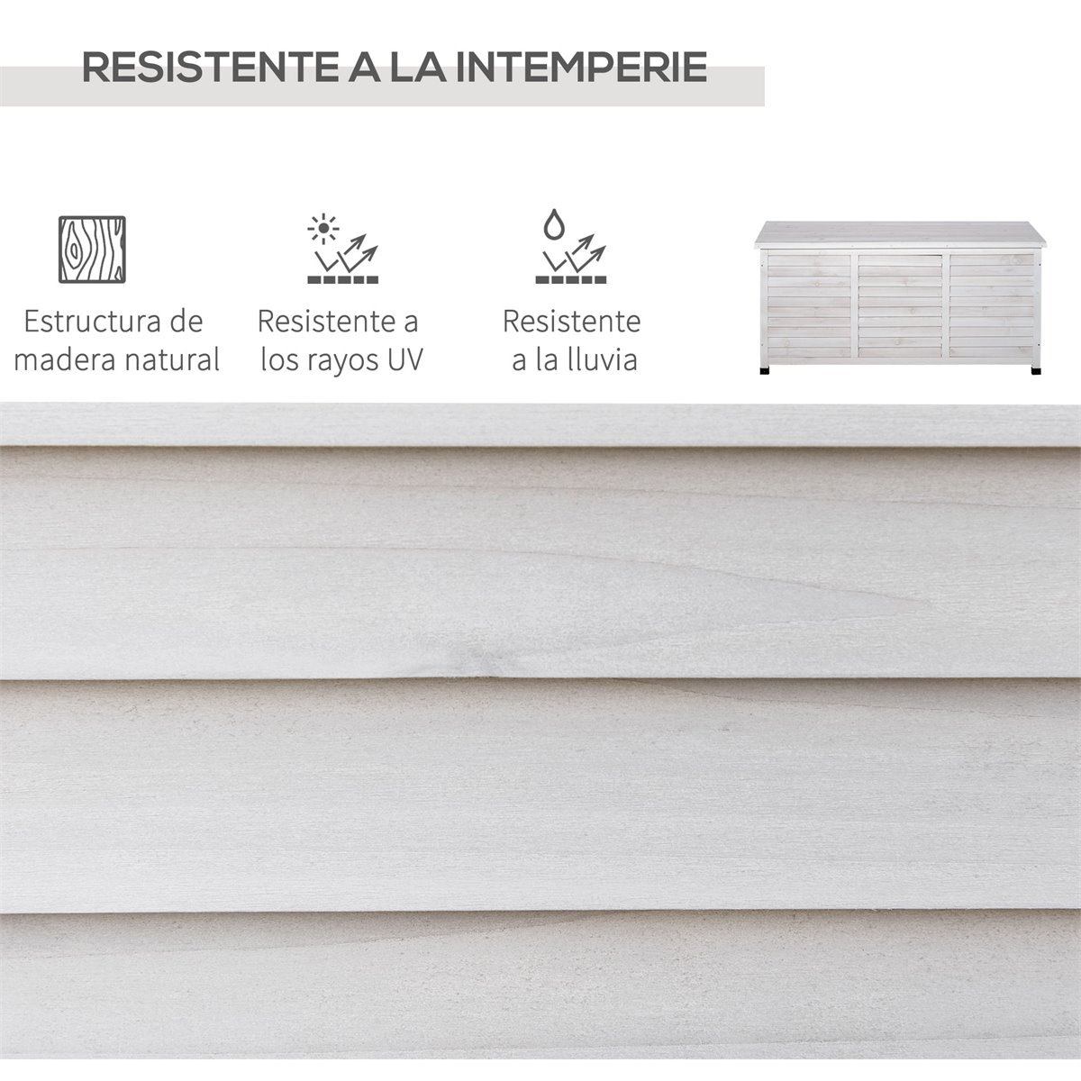 Este baúl de almacenaje de Outsunny es una solución ideal para tener en tu jardín. Un amplio espacio para almacenar herramientas de jardinería, juguetes de exterior, etc. Hecho de madera de abeto maciza tratada para resistir a la intemperie y con protectores en las patas para evitar el contacto de la madera con el suelo. Se puede usar como baúl de almacenaje y también para sentarse. Su diseño de persiana ofrece una buena ventilación interior. ¡Funcional y bonito!