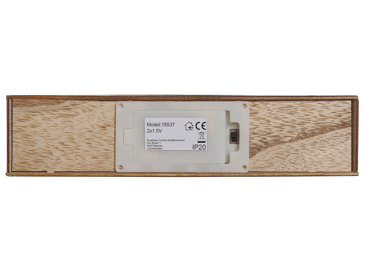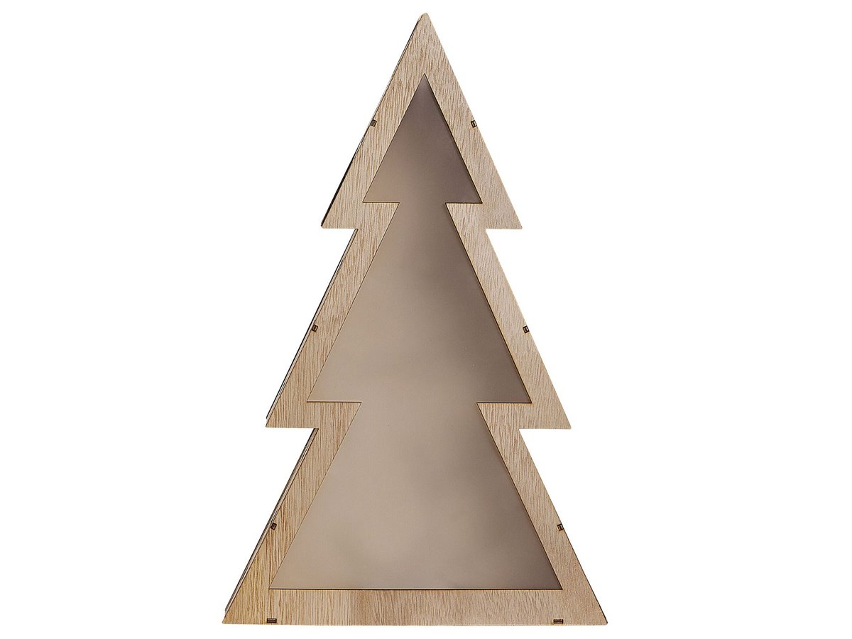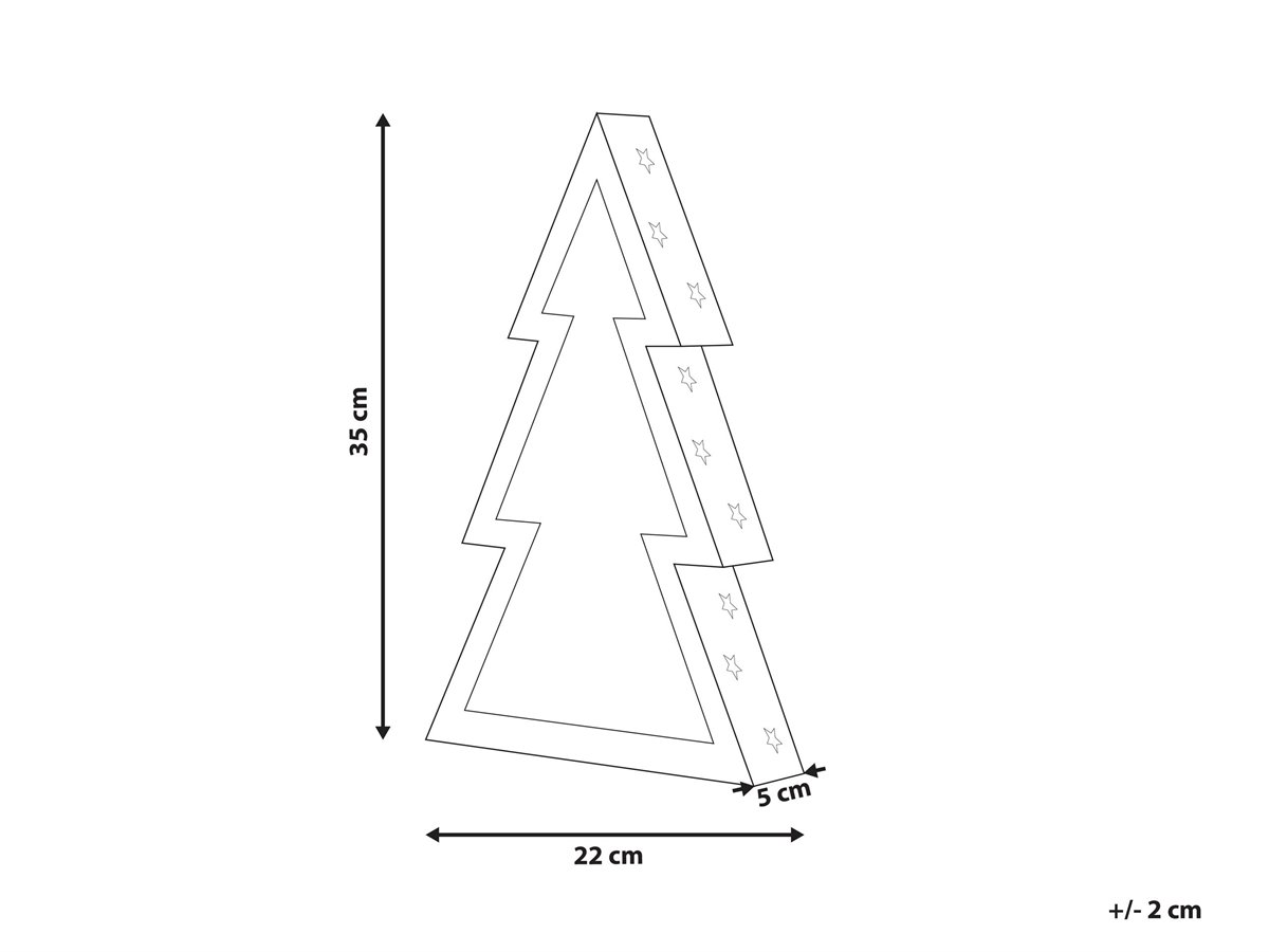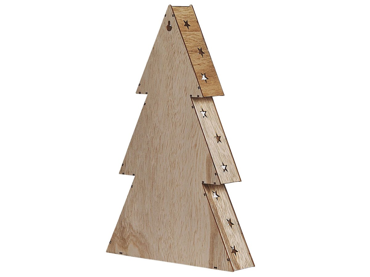 Decoración navideña de madera. Esta decoración LED combina bien en cualquier sala de estar de diseño moderno. Está fabricada a partir de madera de álamo duradera y de alta calidad. La forma de árbol de Navidad y la iluminación LED llaman la atención de niños y adultos. La abertura incluida en la parte posterior permite colgarla en la pared. Combina bien situada sobre una estantería, cómoda o consola.