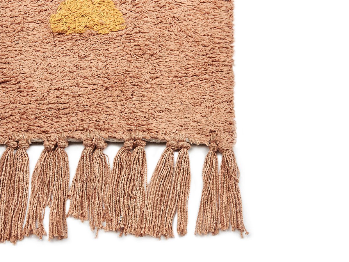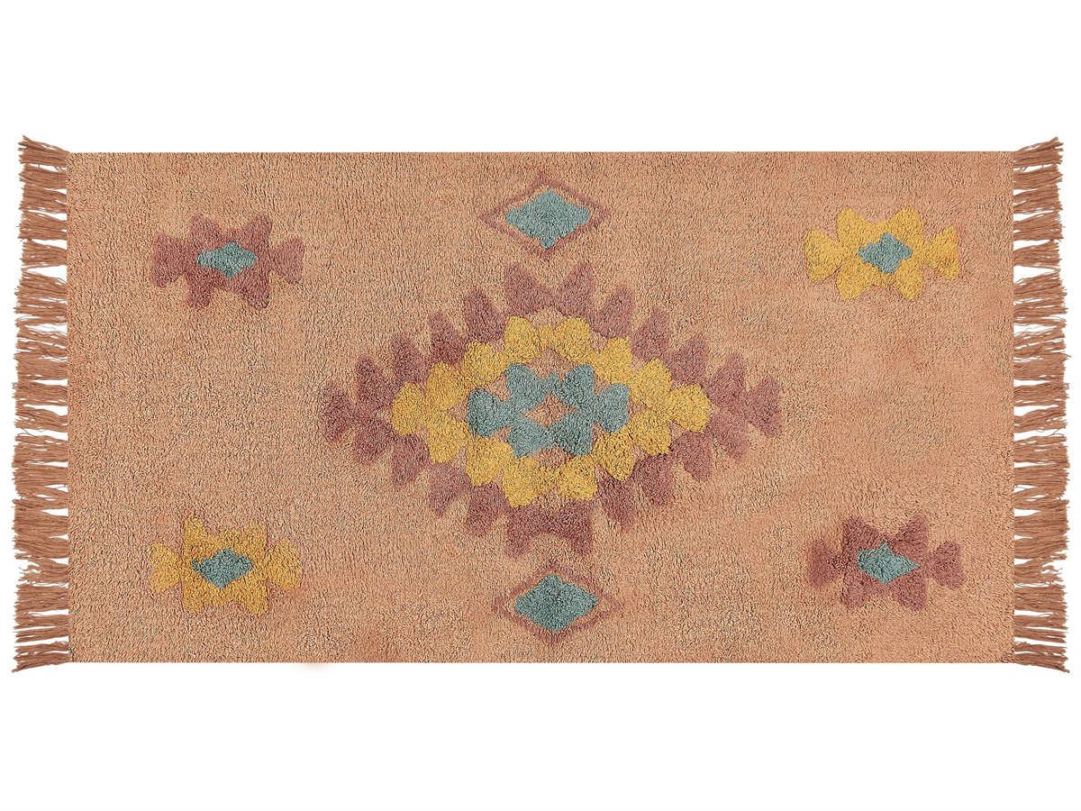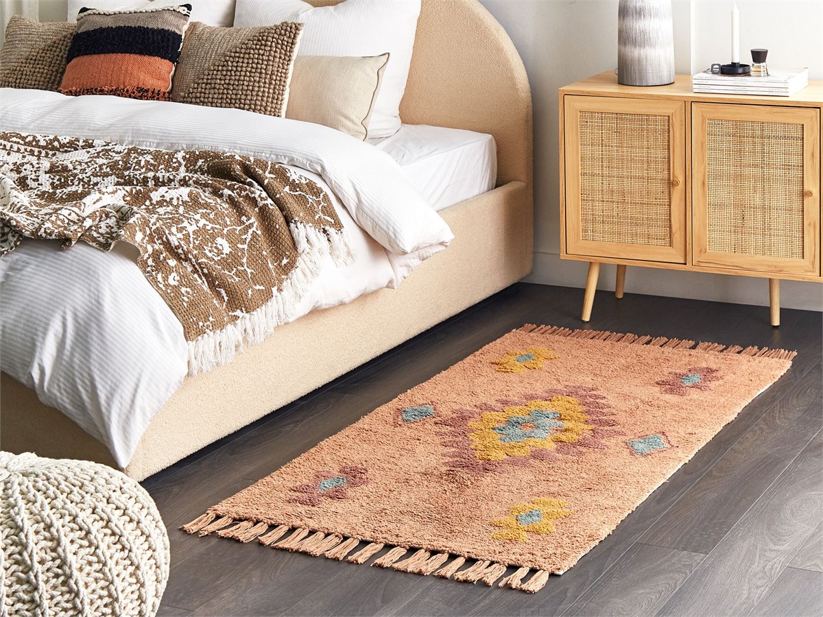 Alfombra de patrón geométrico. Añade un toque oriental a tu sala de estar con esta alfombra decorativa. Está fabricada a mano a partir de algodón de alta calidad y suave al tacto. El patrón geométrico y las borlas decorativas aportan un aire de distinción al diseño.