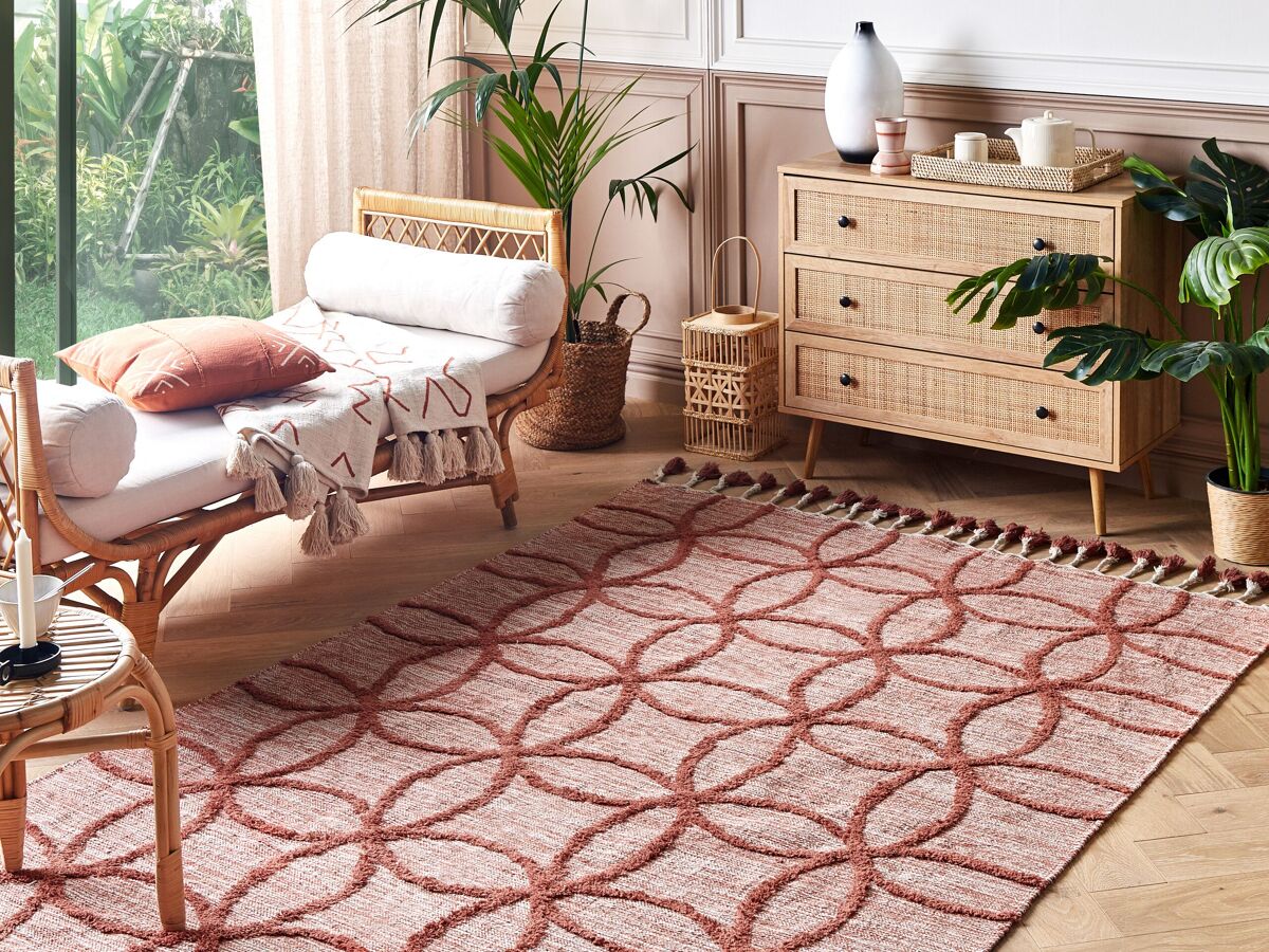 Alfombra de patrón geométrico. Añade un toque acogedor a tu sala de estar o dormitorio con esta alfombra decorativa. Está fabricada a mano a partir de algodón de alta calidad y suave al tacto. El patrón y las borlas decorativas a juego aportan un aire de distinción. Ideal para las habitaciones más concurridas de la casa.