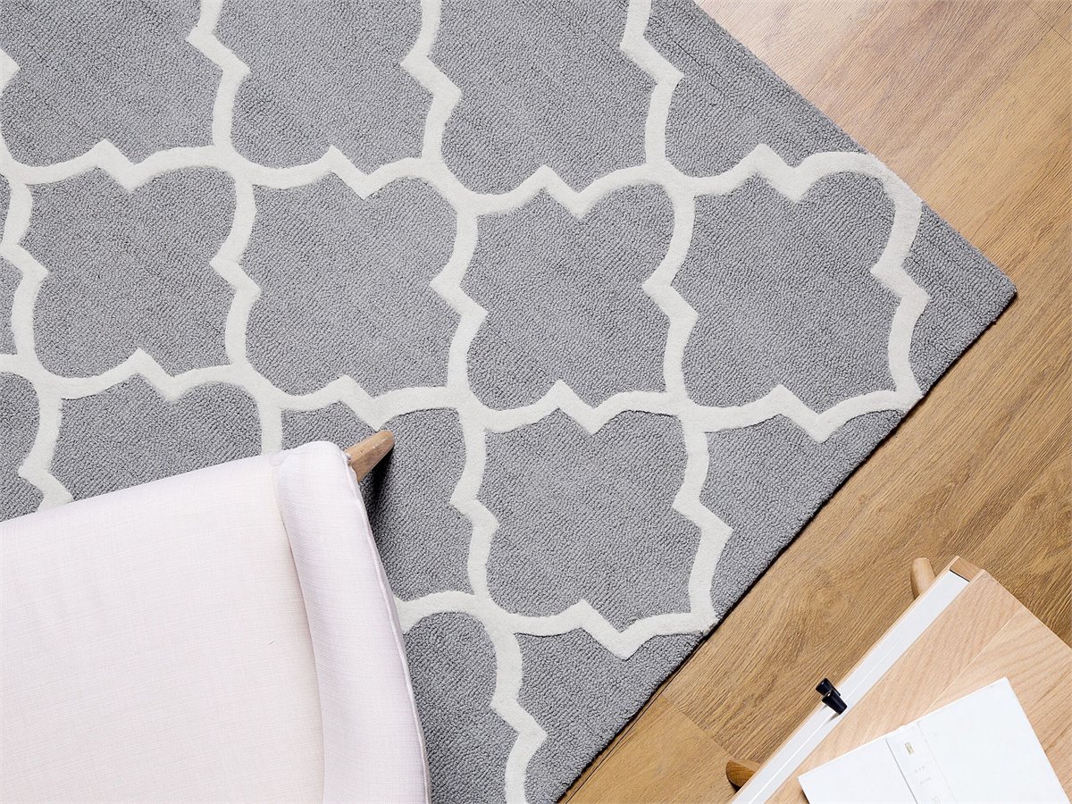 Alfombra de diseño elegante. Esta alfombra de aspecto elegante proporciona la máxima comodidad bajo los pies. Está fabricada a mano a partir de una mezcla de fibras de lana y algodón de alta calidad. El patrón geométrico de inspiración marroquí llama poderosamente la atención. Combina bien en cualquier sala de estar, dormitorio o habitación infantil.