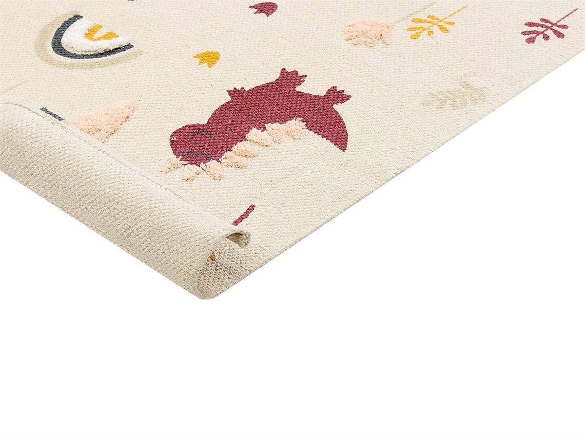 Alfombra para habitación infantil. Renueva la decoración de tu habitación infantil con esta alfombra. Está fabricada a mano a partir de algodón de alta calidad y suave al tacto. El patrón de animales de tonos neutros estimula la creatividad de los más pequeños de la casa. El reverso pulverizado protege de un posible resbalón.
