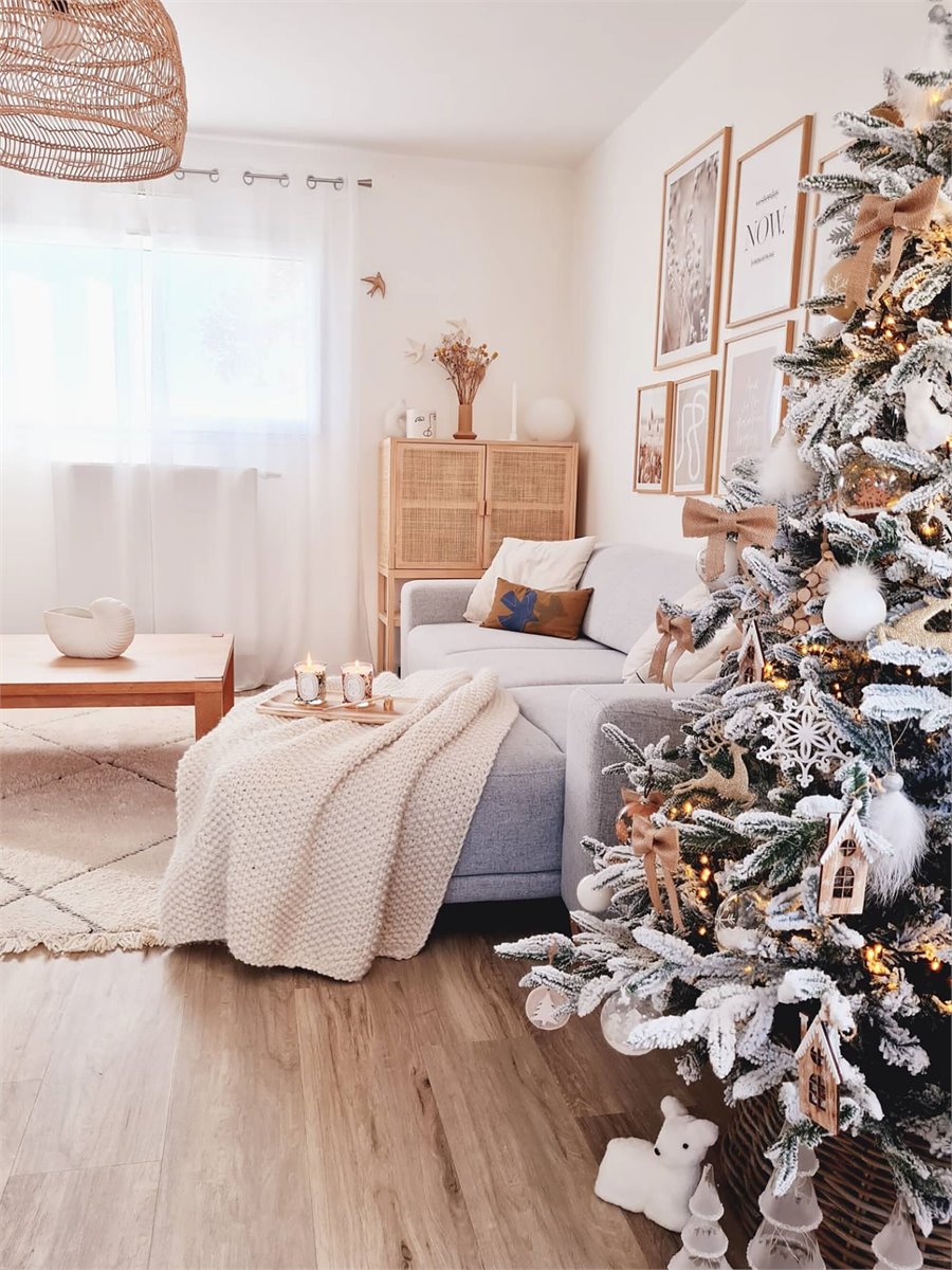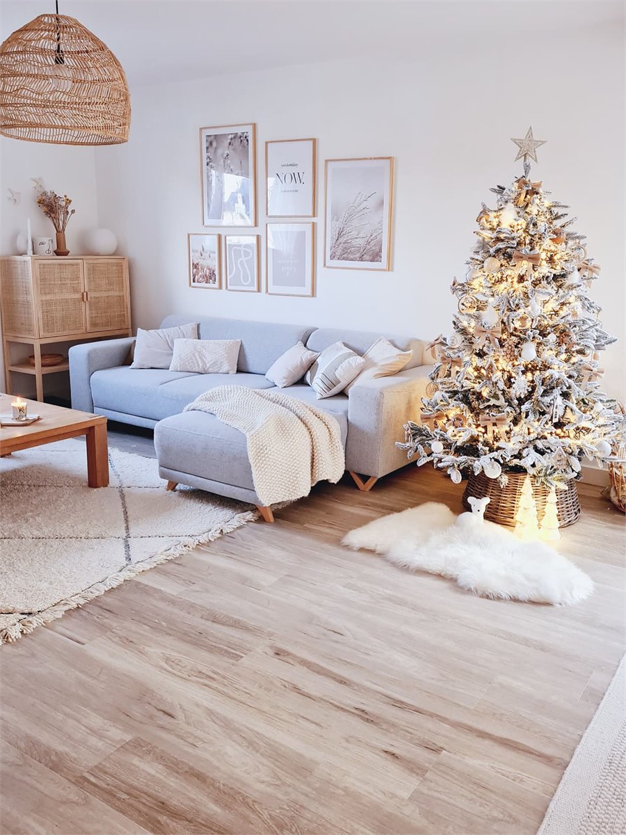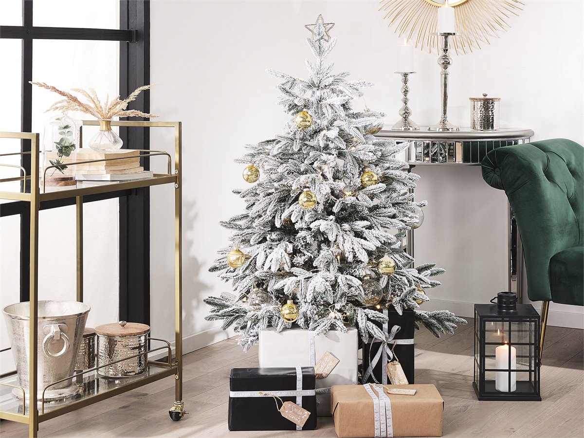 Ventajas: Ramas cubiertas con nieve artificial, Las ramas son fácilmente ajustables, Materiales de la más alta calidad, Solo para uso en interiores, Tapas de goma para proteger el suelo