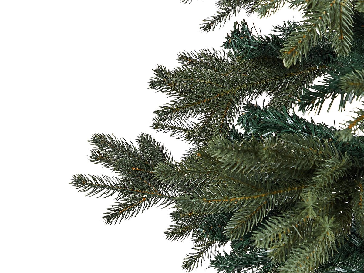 Árbol artificial decorativo. Aporta un encanto navideño a tu salón con este clásico árbol verde. Gracias a las ramas ajustables, puedes darle forma para que parezca aún más realista y se convierta en el centro de atención de tu decoración navideña. Fabricado en material sintético agradable al tacto y a la vista, no pierde agujas y es muy fácil de cuidar. El árbol viene con una base metálica que se ajusta perfectamente y con tapones de goma para proteger el suelo de arañazos. Queda genial decorado con bolas de Navidad de colores y luces.