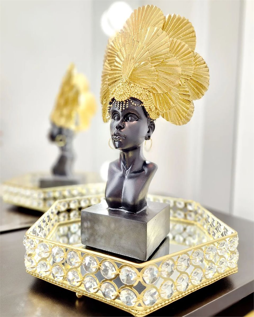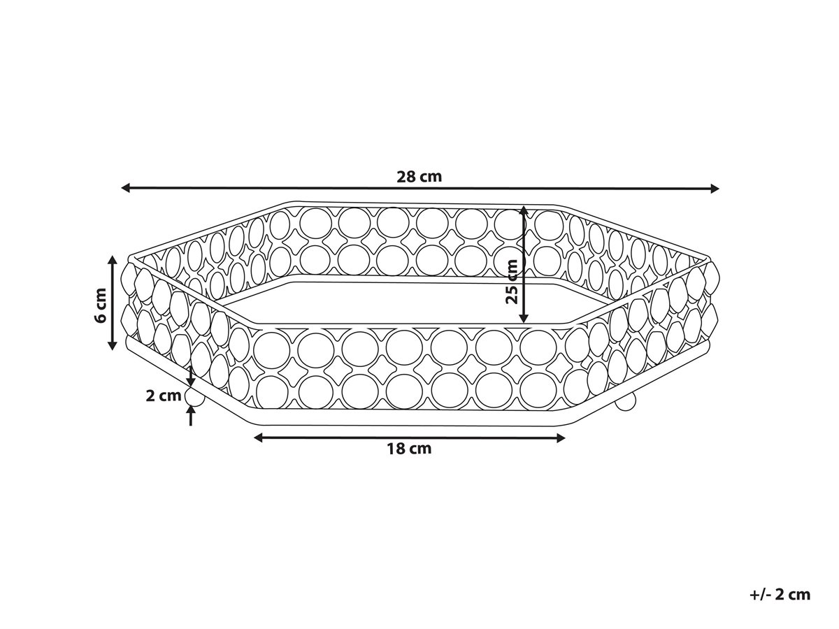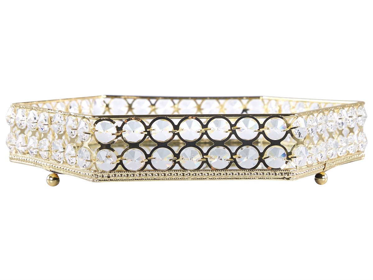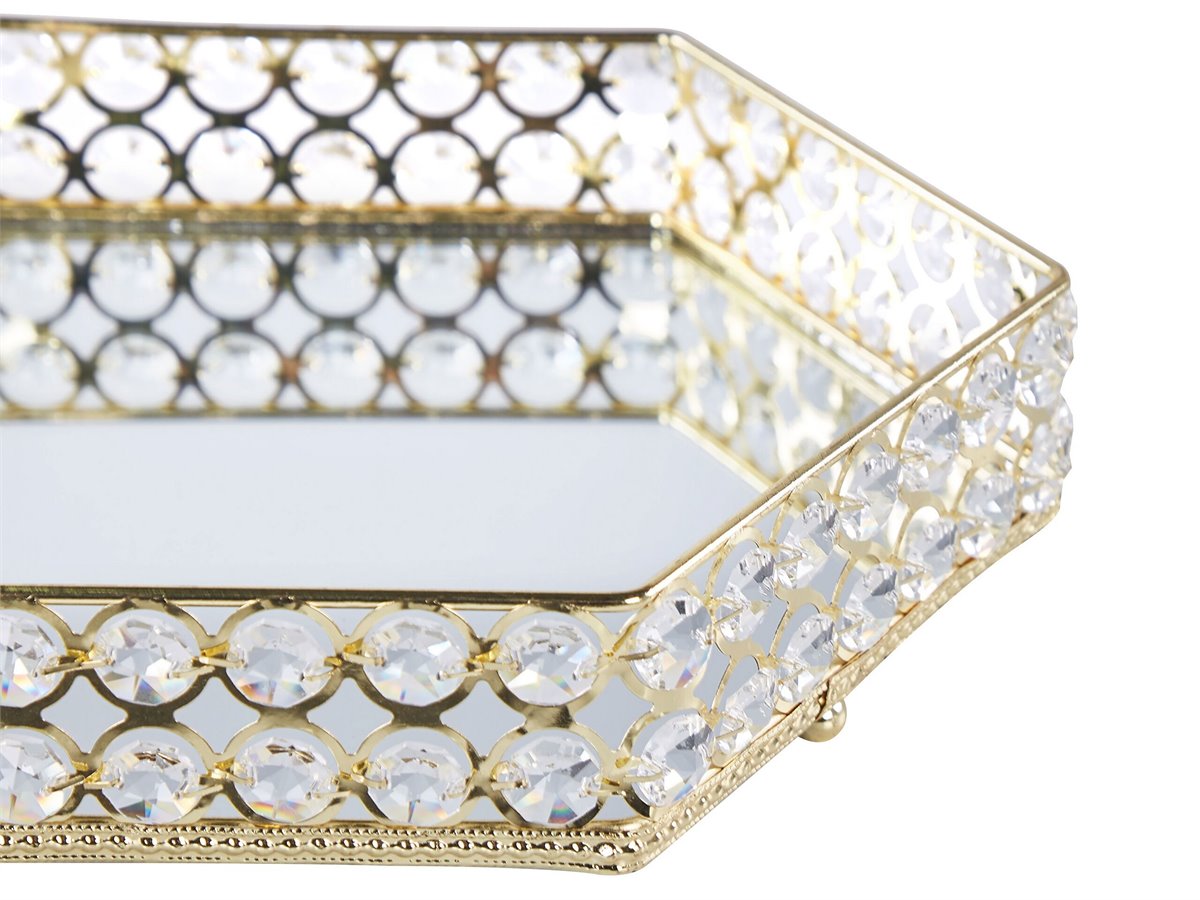 Decoración de estilo glamuroso. Esta bandeja decorativa aporta un toque de elegancia a cualquier interior de estilo glamuroso. Está fabricada a partir de metal ligero y cuenta con pedrería de cristal brillante con fondo de vidrio espejado. Ideal para guardar joyas en el dormitorio o como accesorio decorativo en la sala de estar.