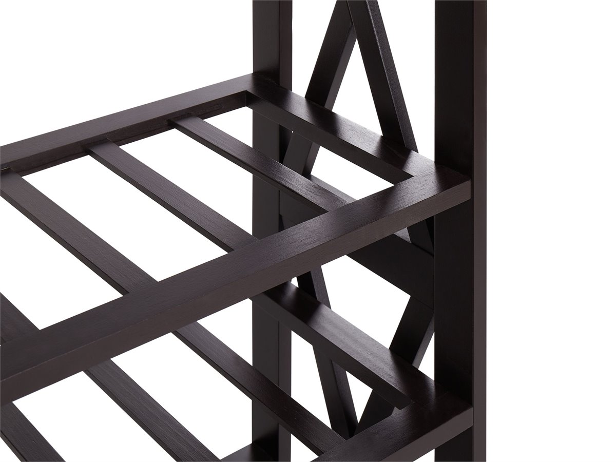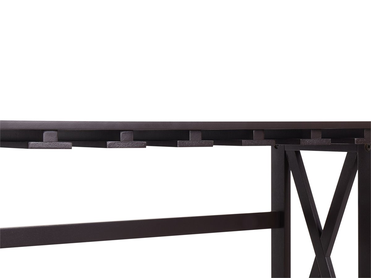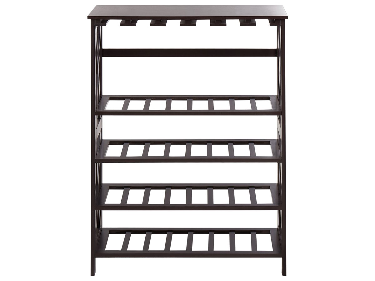 Elegante soporte para vino. Realza el bar de tu casa con este elegante botellero, que cuenta con varios estantes para guardar botellas y rejillas integradas para vasos y copas. El robusto diseño en forma de X garantiza la durabilidad, mientras que la amplia parte superior proporciona una superficie ideal para servir bebidas o mostrar decoración. Diseñado tanto para ser funcional como elegante, esta pieza mantiene tu colección de vinos organizada y fácilmente accesible, por lo que es una pieza imprescindible para cualquier amante del vino.