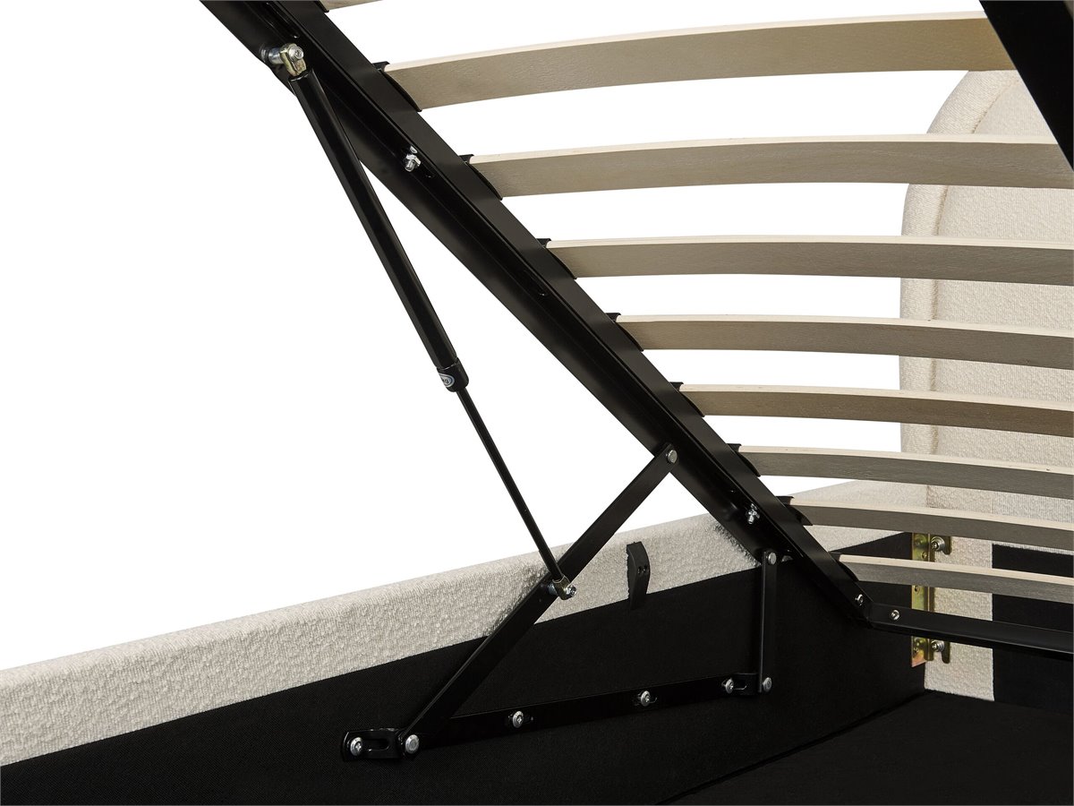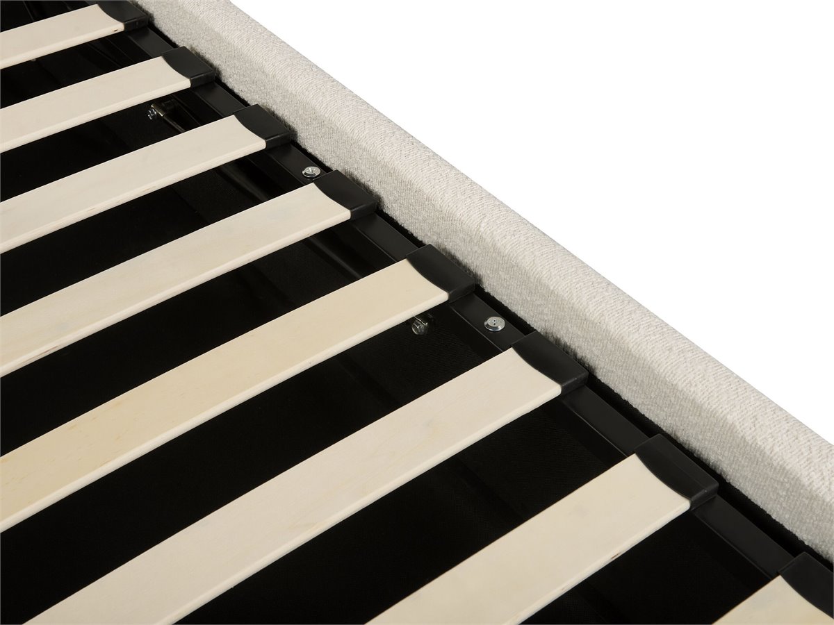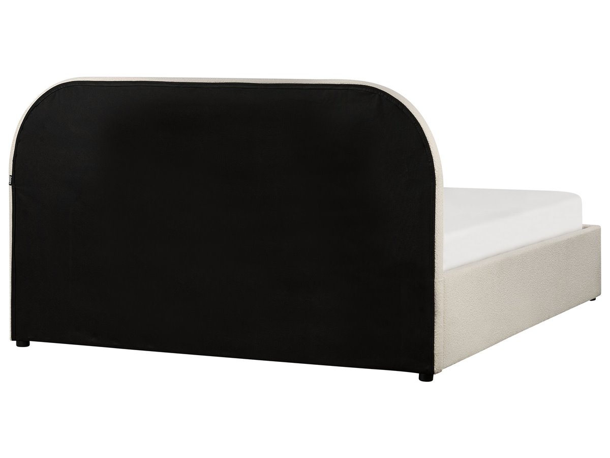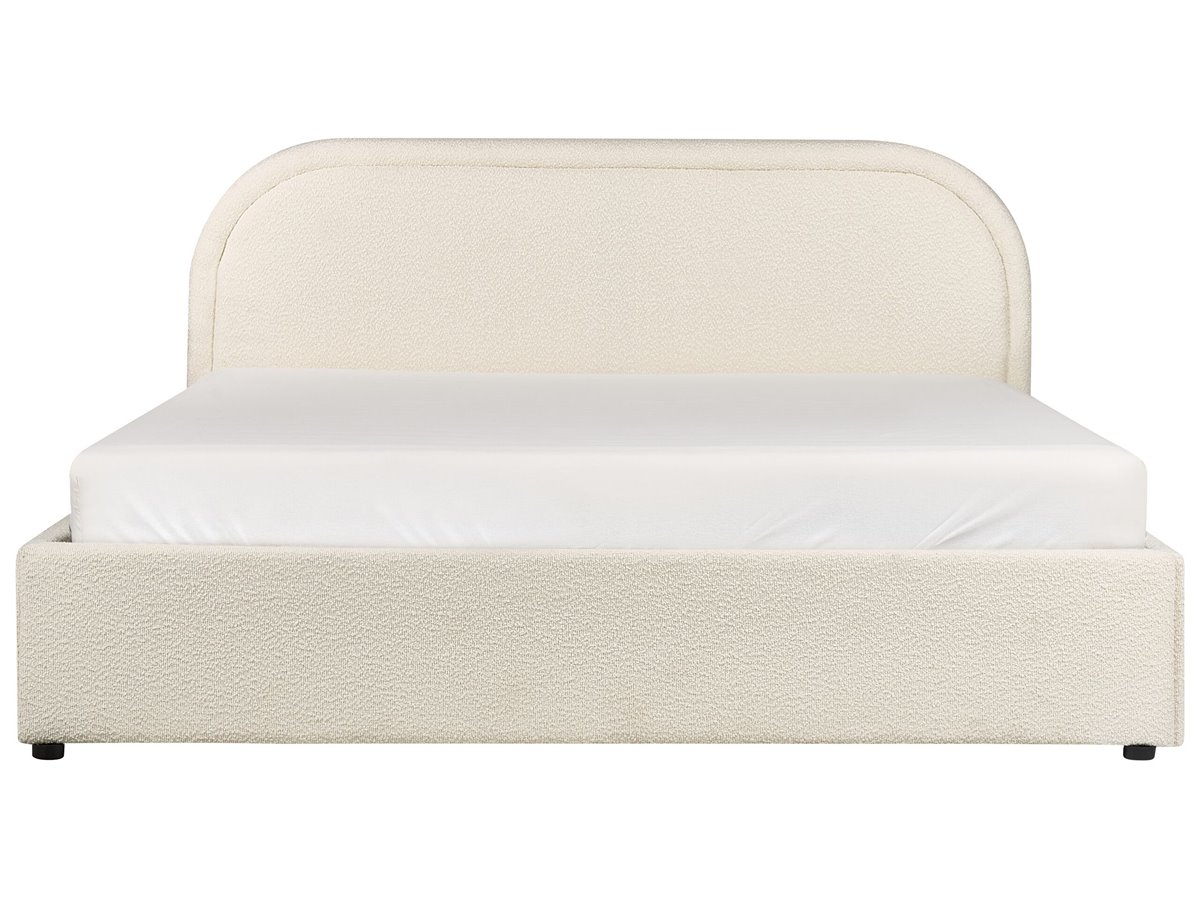 Cama de estilo moderno con cabecero. Esta cama presenta un diseño elegante y funcional, perfecto para dormitorios contemporáneos. Cuenta con un cómodo cabecero tapizado en suave tejido boucle, que añade un toque de lujo y textura. La estructura incluye compartimentos de almacenamiento integrados, ideales para optimizar el espacio guardando la ropa de cama u otros objetos. Fabricada con un robusto somier de láminas, esta cama garantiza un soporte duradero y la circulación del aire, mejorando la longevidad y el confort del colchón. La combinación de practicidad y diseño elegante la convierte en un gran complemento para cualquier hogar moderno.