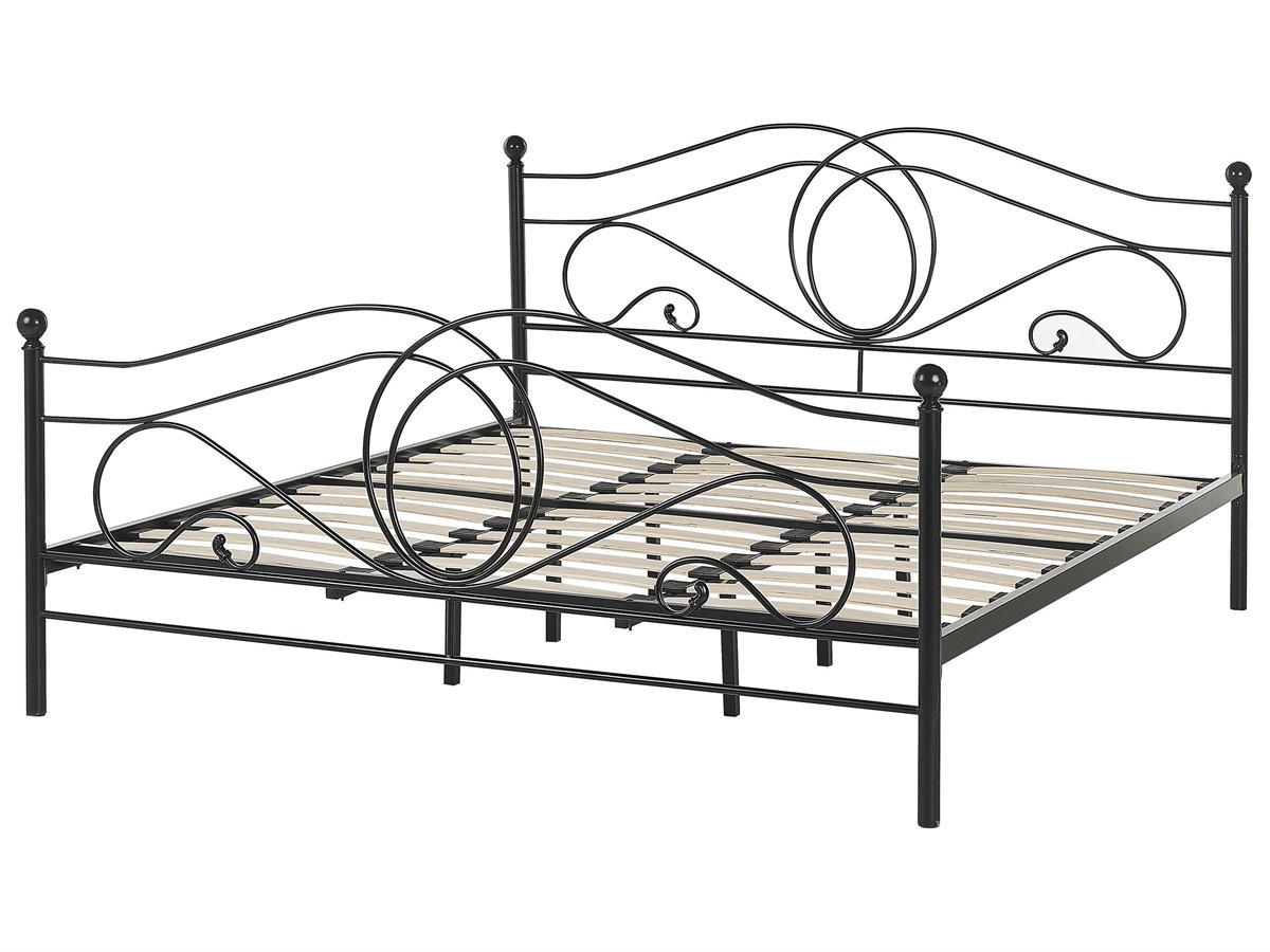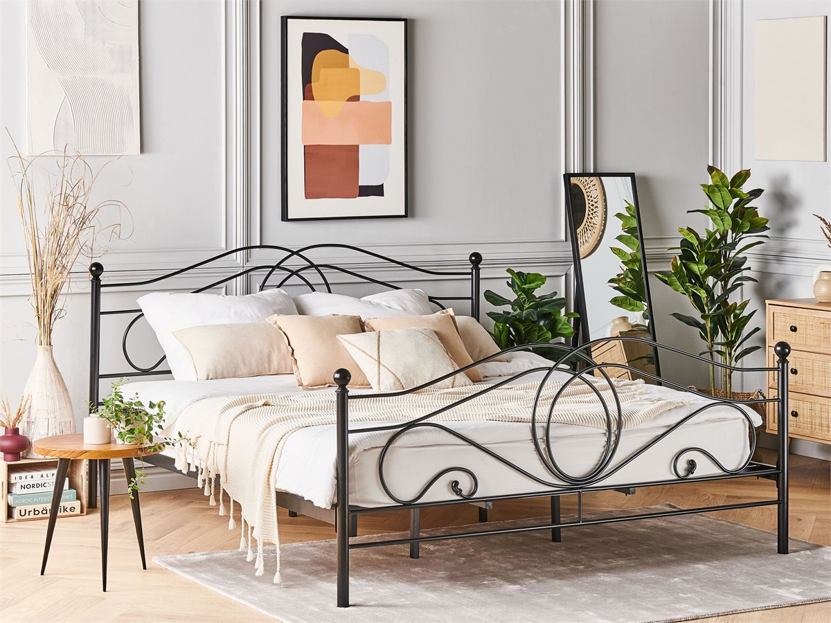 Cama de diseño moderno. Añade un toque de romanticismo a tu dormitorio con esta cama con somier. Está fabricada a partir de metal resistente con recubrimiento en polvo y de fácil mantenimiento. Las formas curvas aportan un toque elegante al diseño.