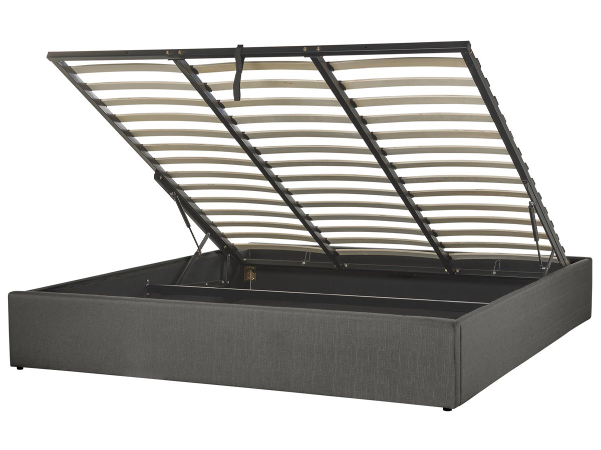 Cama con almacenaje. Dale un toque de elegancia a tu dormitorio con esta cama con somier de diseño clásico. Está fabricada a partir de tela de poliéster de alta calidad. El somier de listones garantiza un sueño saludable y una distribución uniforme del peso corporal. El tamaño compacto y el diseño sin cabecero aportan un toque de distinción. Incluye un amplio espacio de almacenaje donde guardar la ropa de cama.