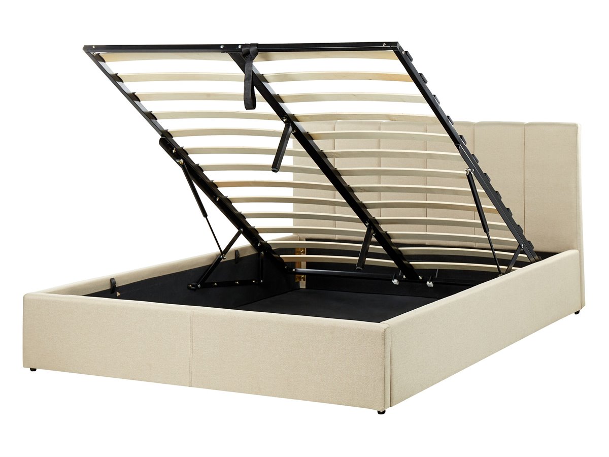 Ventajas: La base de listones que absorbe los golpes proporciona un soporte perfecto, El marco integrado garantiza la máxima estabilización, Estilo escandinavo minimalista, Combina con todo tipo de decoración, Acolchado de alta calidad, El mecanismo de elevación neumático garantiza un fácil acceso al espacio de almacenamiento
