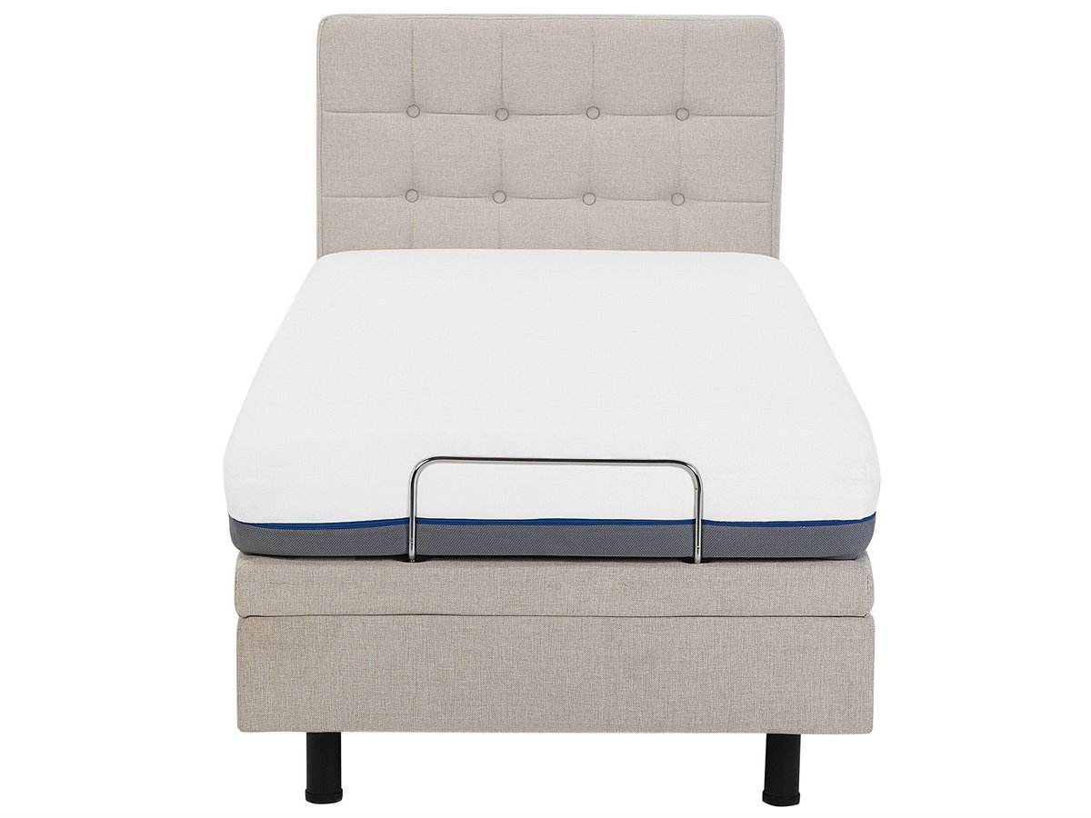Información adicional: La altura del colchón visible en la imagen es de 20 cm, por lo que recomendamos utilizar un colchón de una altura similar. Para obtener el mejor rendimiento del marco ajustable, recomendamos utilizar colchones de espuma, que pueden adaptarse fácilmente al marco móvil. Lo mejor es si el grosor no supera los 30 cm, de modo que el colchón sea lo suficientemente flexible como para ajustarse junto con el marco de la cama. No se recomienda utilizar colchones de muelles con camas ajustables, ya que no se doblarán con el marco y puede correr el riesgo de dañar el colchón.
