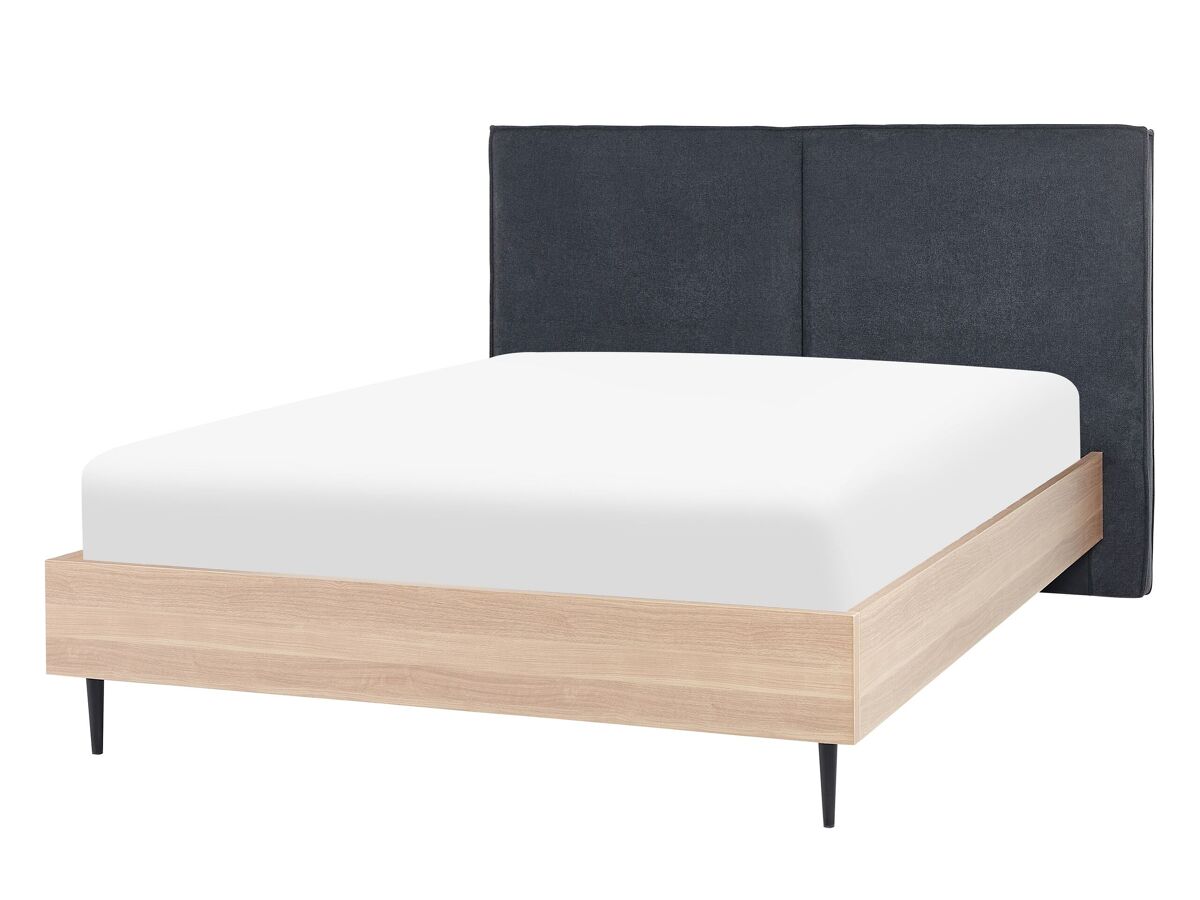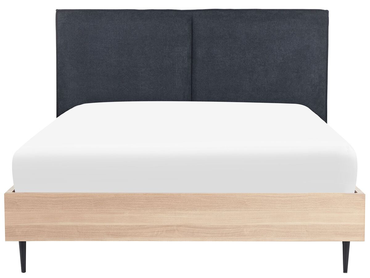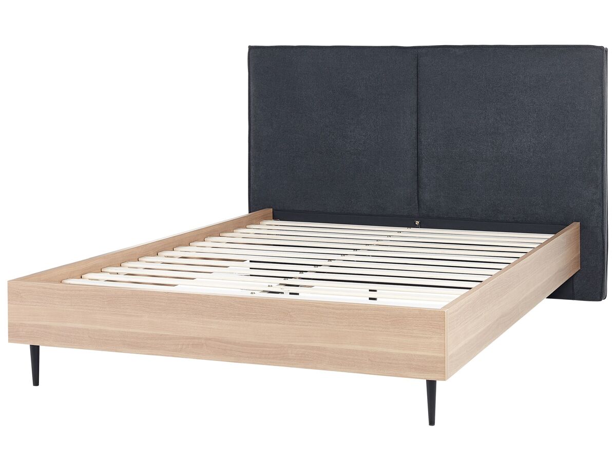 Cama de diseño moderno. Añade elegancia y un toque contemporáneo a tu dormitorio con esta cama con somier. Está fabricada a partir de tela de poliéster de alta calidad y suave al tacto. La estructura de MDF y las patas de metal garantizan la máxima estabilidad. El somier de láminas de madera de álamo ofrece el mejor descanso.