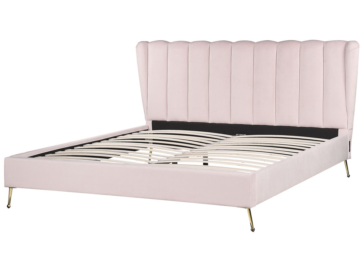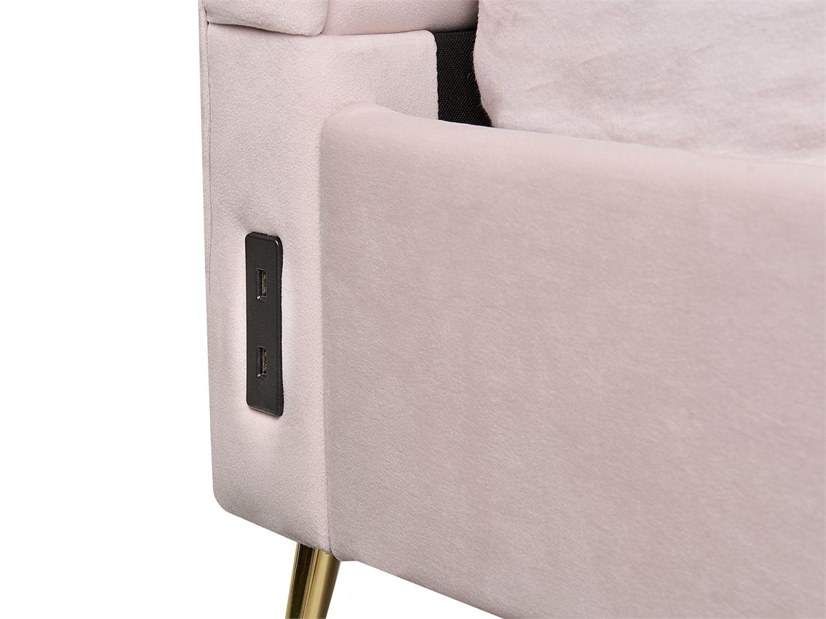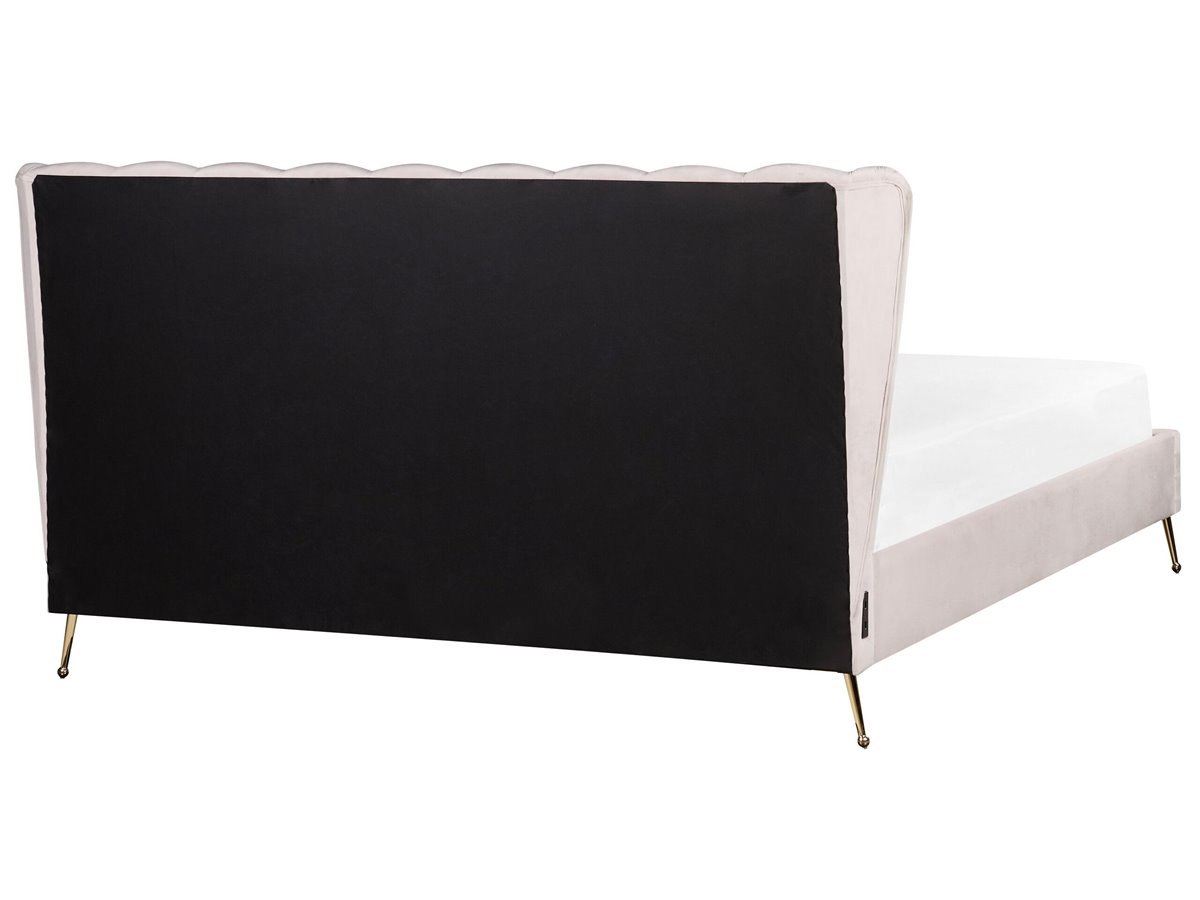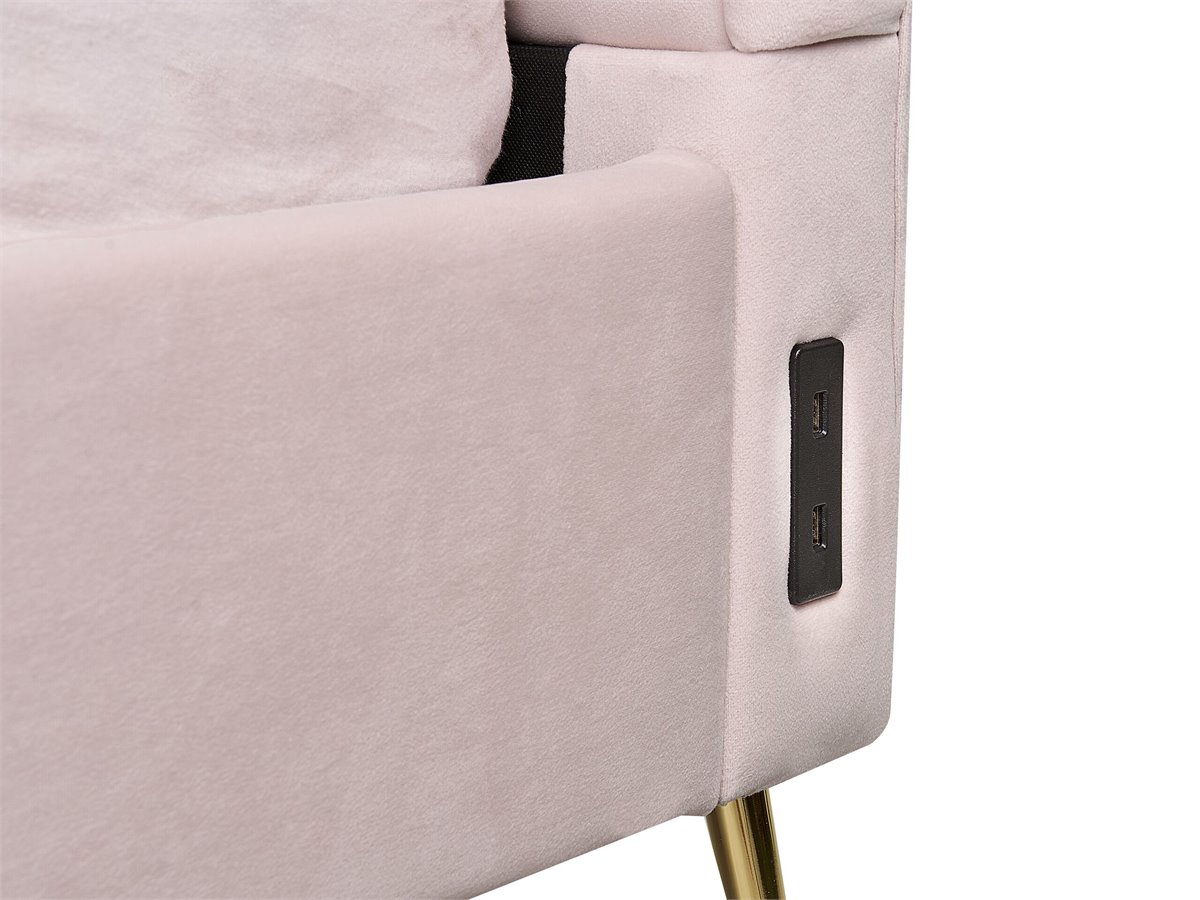 Cama de diseño glamuroso. Añade un toque de glamour a tu dormitorio con esta cama con somier. Está fabricada a partir de tela de terciopelo de alta calidad y suave al tacto. El cabecero viene con puertos USB a ambos lados, combinando a la perfección tecnología y descanso. Las patas de metal aportan un aire contemporáneo al diseño.