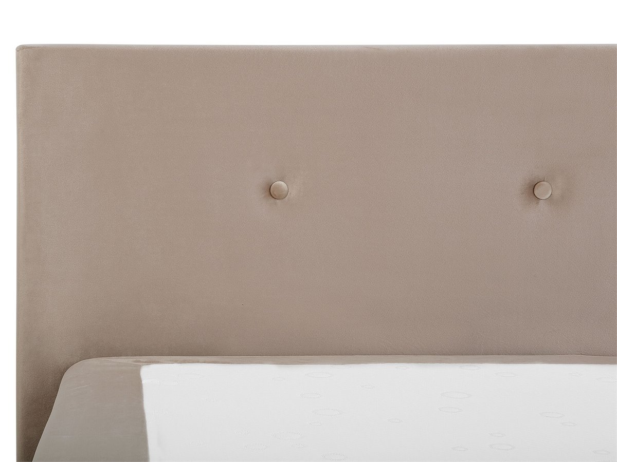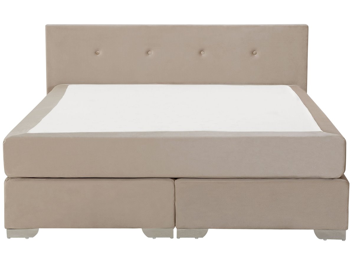Cama de estilo minimalista. Añade un toque acogedor a tu dormitorio con esta cama continental. Está fabricada a partir de terciopelo de alta calidad. Las 2 bases y el colchón de muelles garantizan la máxima firmeza. Las líneas limpias, el diseño contemporáneo y los botones decorativos en el cabecero encajan bien en un interior moderno o tradicional.