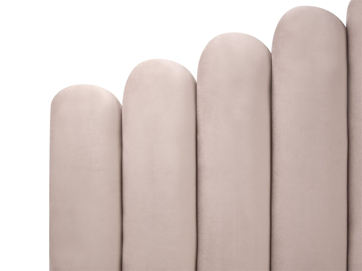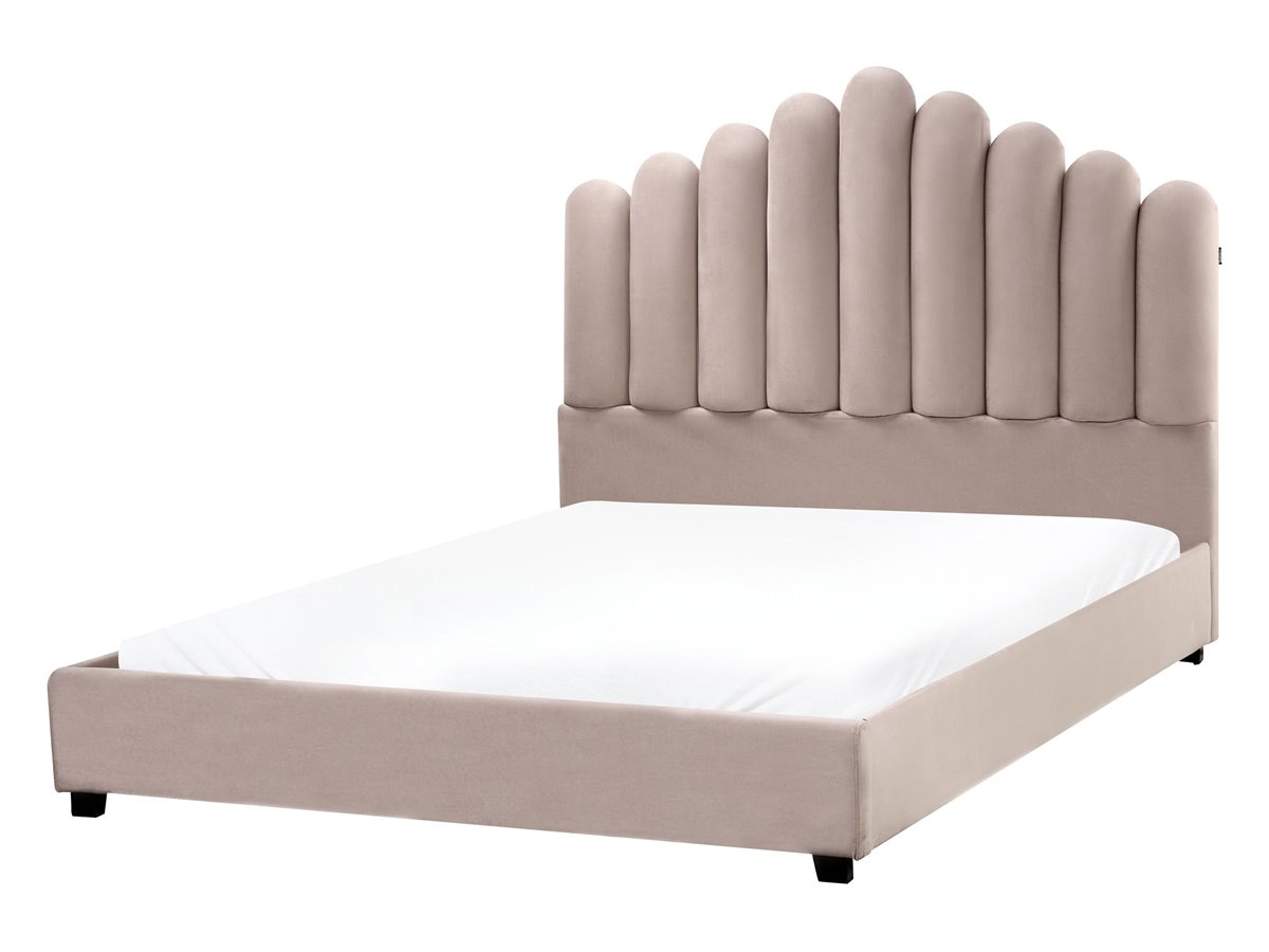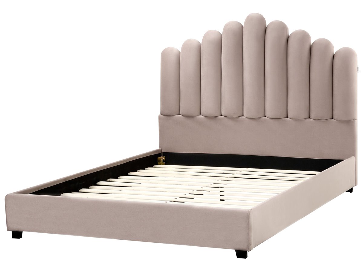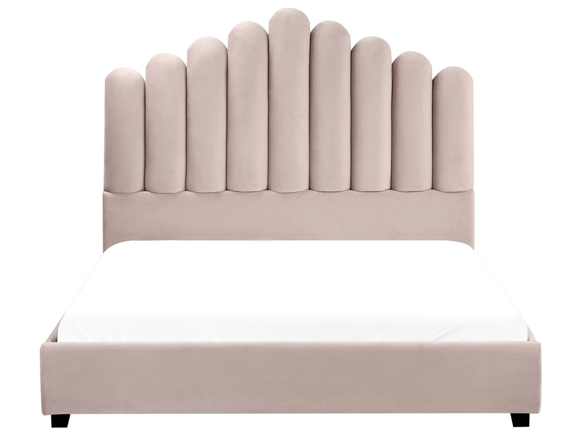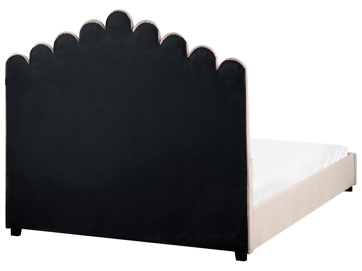 Cama de diseño glamuroso. Añade un toque de distinción a tu dormitorio con esta magnífica cama. Su estructura de madera está completamente revestida con un suave tapizado de terciopelo de poliéster en un precioso tono. La cama cuenta con un hermoso cabecero diseñado para parecerse a una concha de mar para darle un toque de glamour. El somier de láminas ofrece un soporte perfecto para cualquier colchón. Chic y elegante, se convertirá sin duda en una auténtica joya en cualquier ambiente moderno.