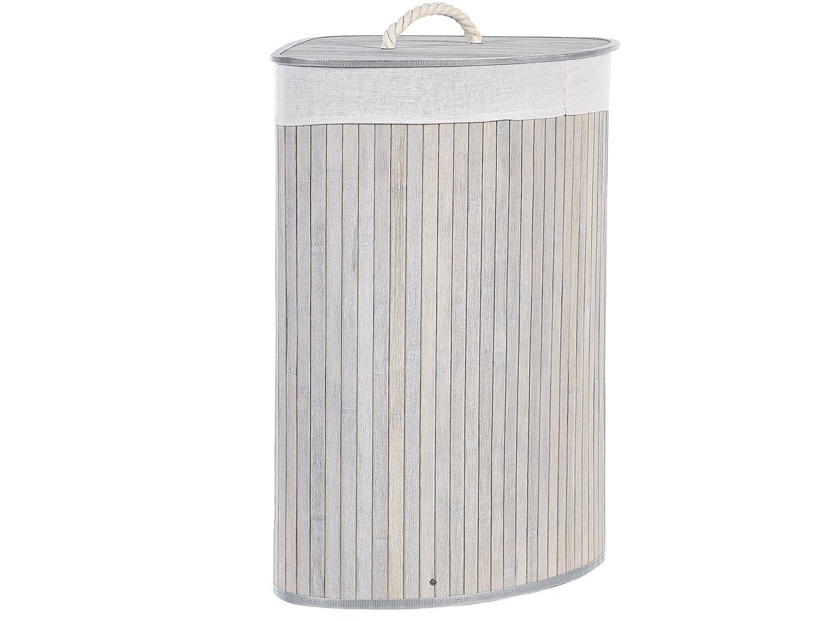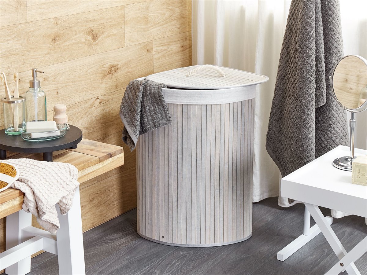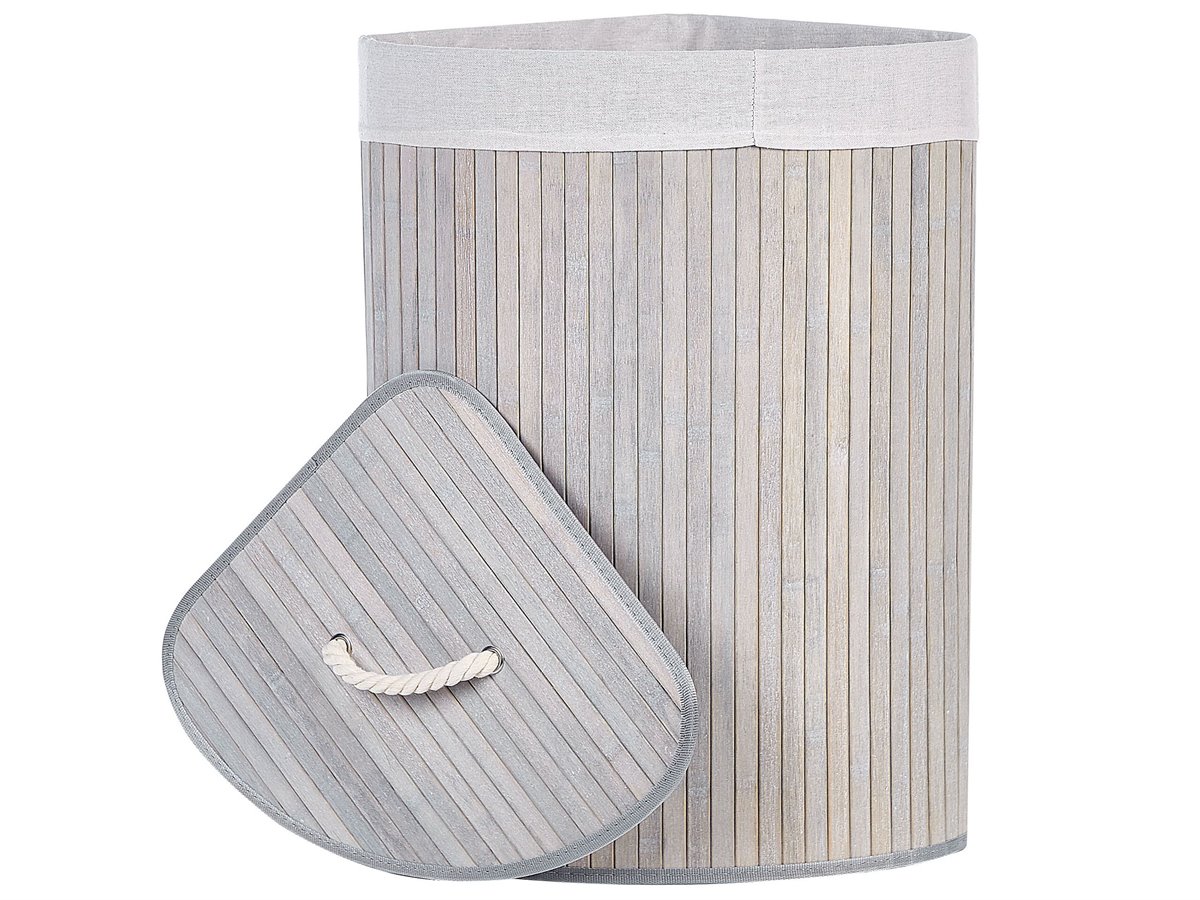Canasta decorativa. Mantén tu espacio siempre limpio y ordenado con esta cesta. Está fabricada a partir de madera de bambú de alta calidad. Puedes utilizarla como cesto para la ropa sucia o como unidad de almacenaje para otros accesorios. Gracias a su forma, combina bien en la esquina de la habitación, sin ocupar mucho espacio.