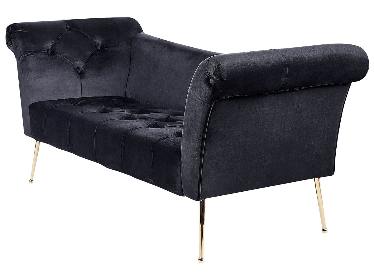 Chaise longue de diseño glamuroso. Dale un toque de glamour a tu sala de estar o dormitorio con esta chaise longue. El respaldo, los reposabrazos de contornos curvos y la tapicería de terciopelo acolchado combinan a la perfección con las patas de estilo vintage. Utilizable como sillón o pieza decorativa.