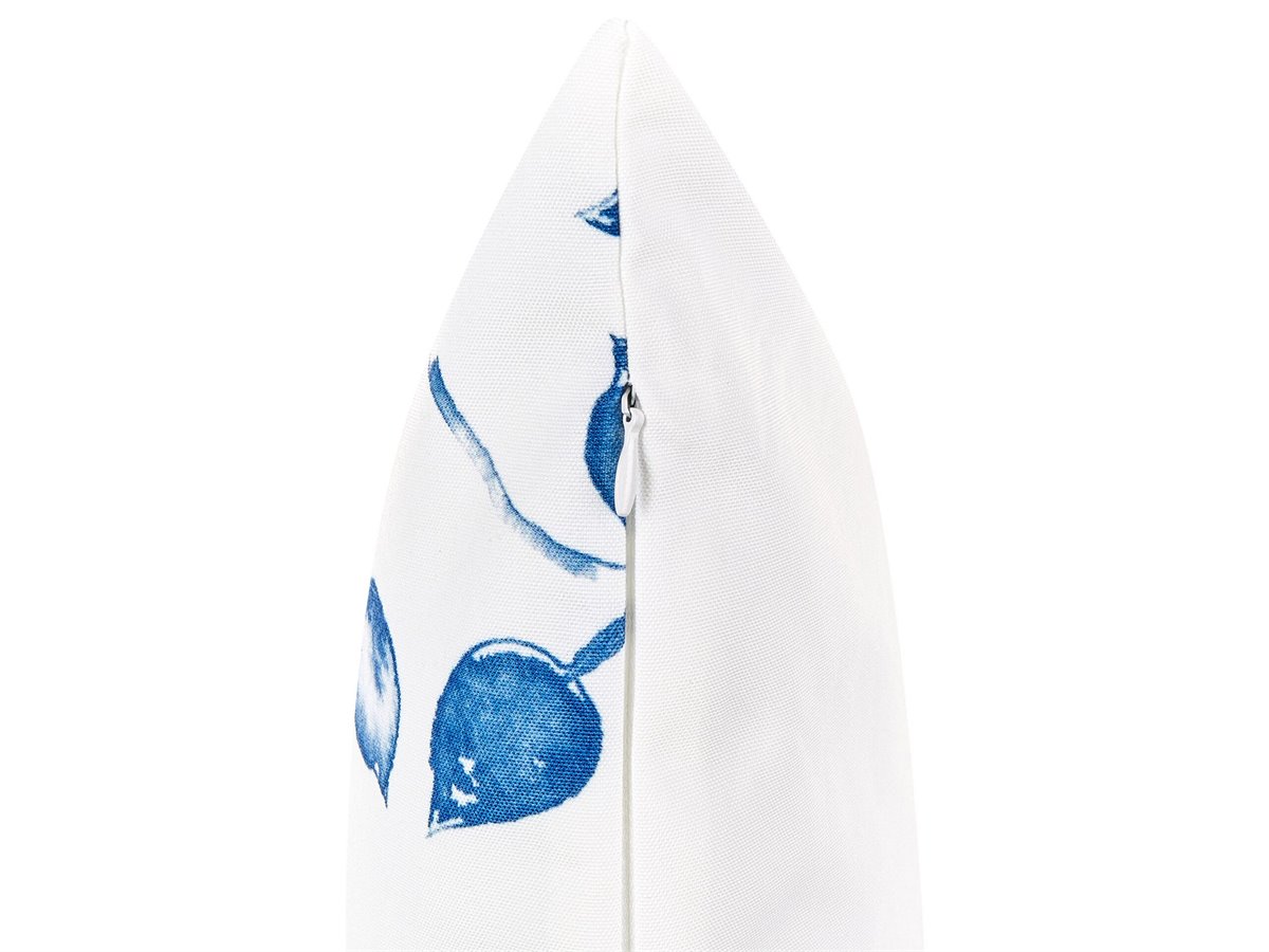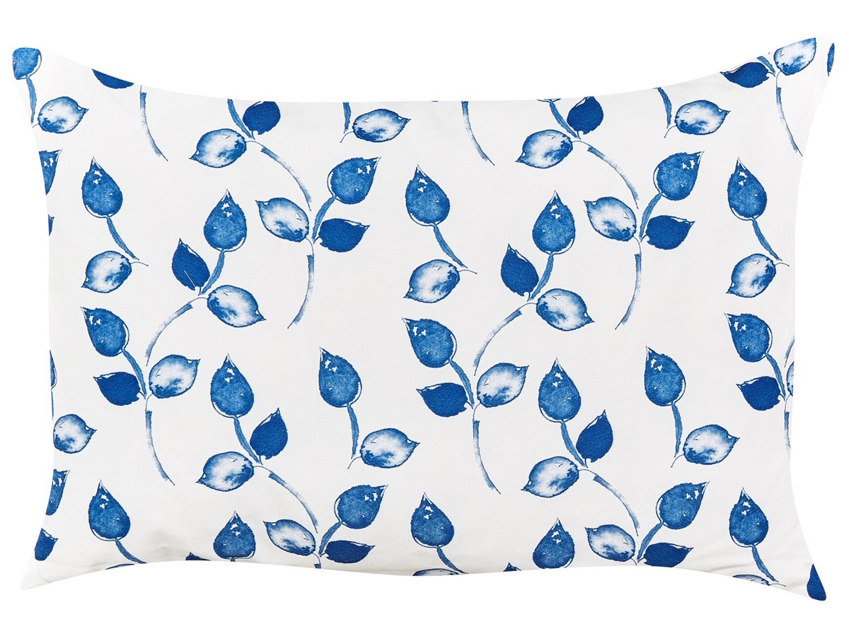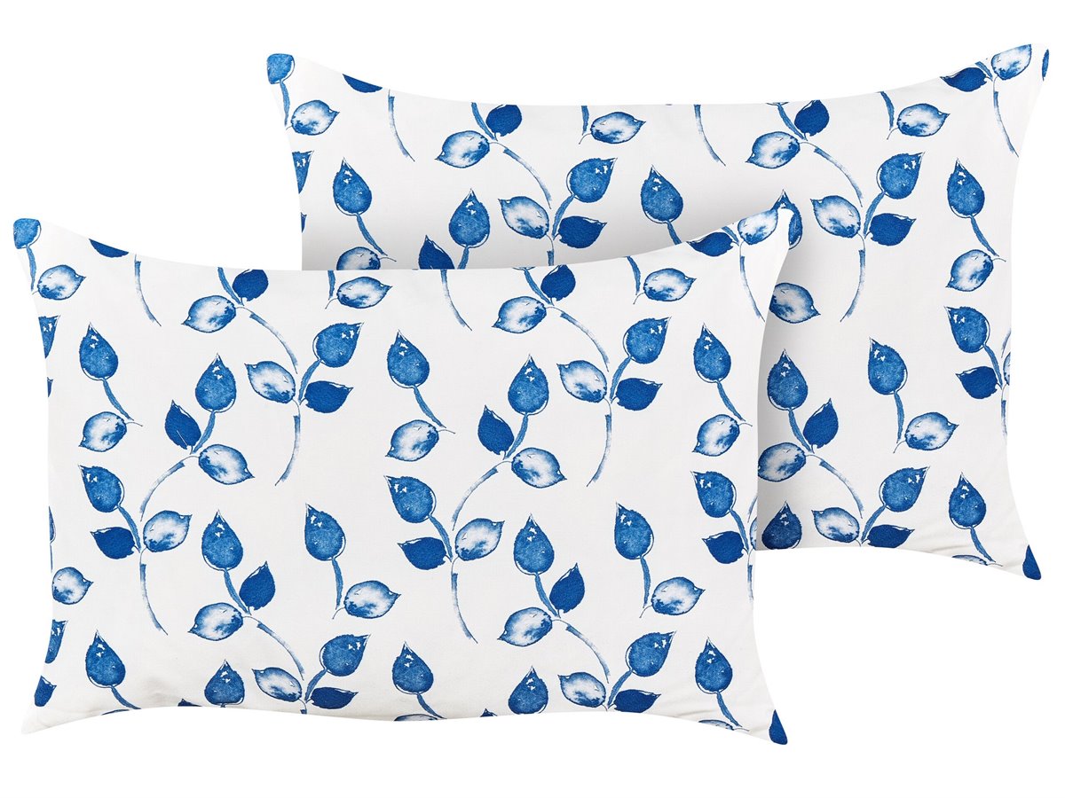 Juego de cojines de exterior. Trasforma tu espacio exterior con un juego de dos cojines de jardín. Adornados con un refrescante estampado de hojas azules sobre un fondo blanco, estos accesorios combinan armoniosamente estilo y funcionalidad con sus fundas impermeables. Aumenta la comodidad de tu jardín sin esfuerzo.