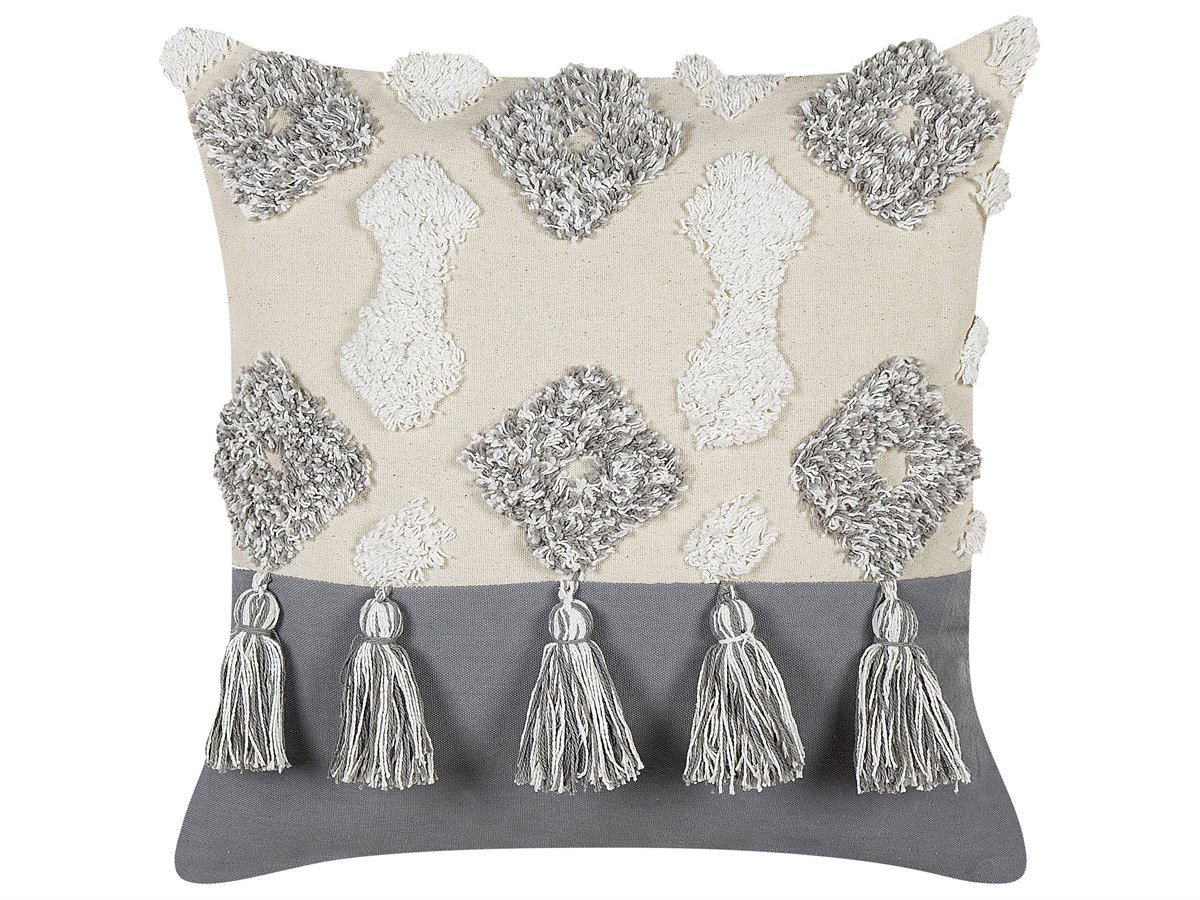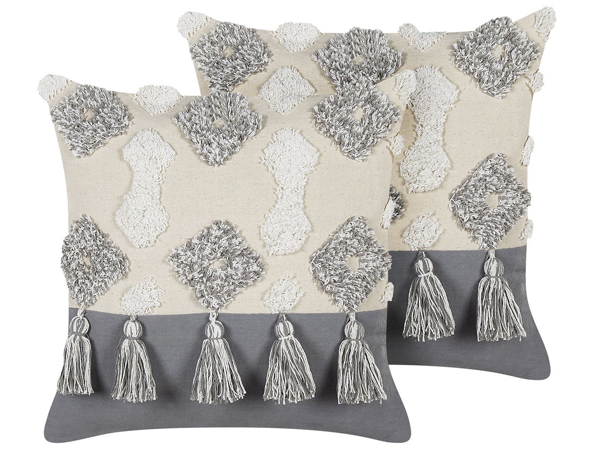 Juego de cojines decorativos. Añade un extra de confort a tu interior con este conjunto de 2 cojines decorativos. Está fabricado a partir de algodón de alta calidad, duradero y suave al tacto. El patrón de diamantes con borlas decorativas llama poderosamente la atención.