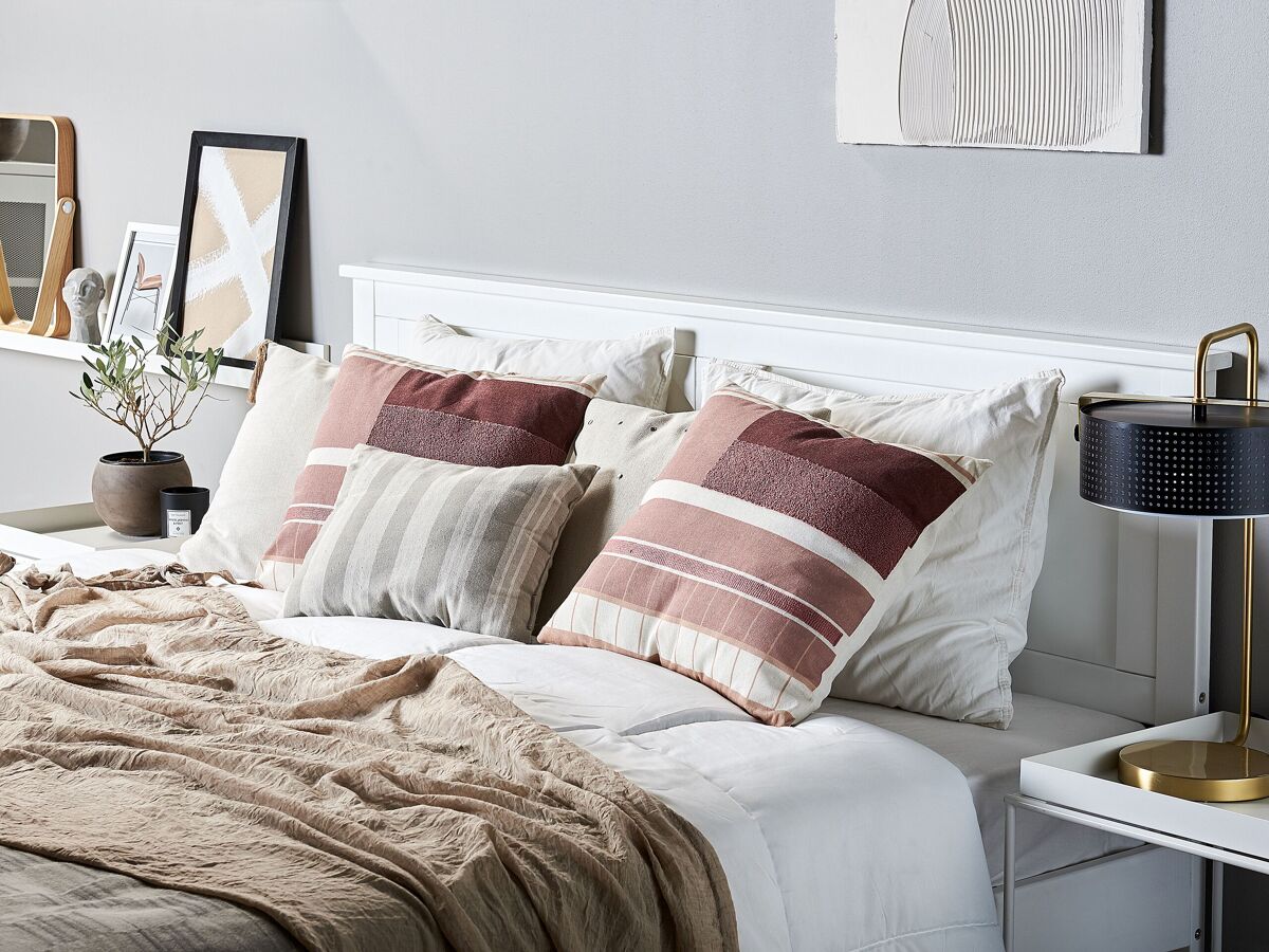 Juego de cojines decorativos. Añade a tu interior este conjunto de 2 cojines decorativos. Está fabricado a partir de tela de poliéster combinado con lino y algodón de alta calidad. El patrón geométrico llama poderosamente la atención.