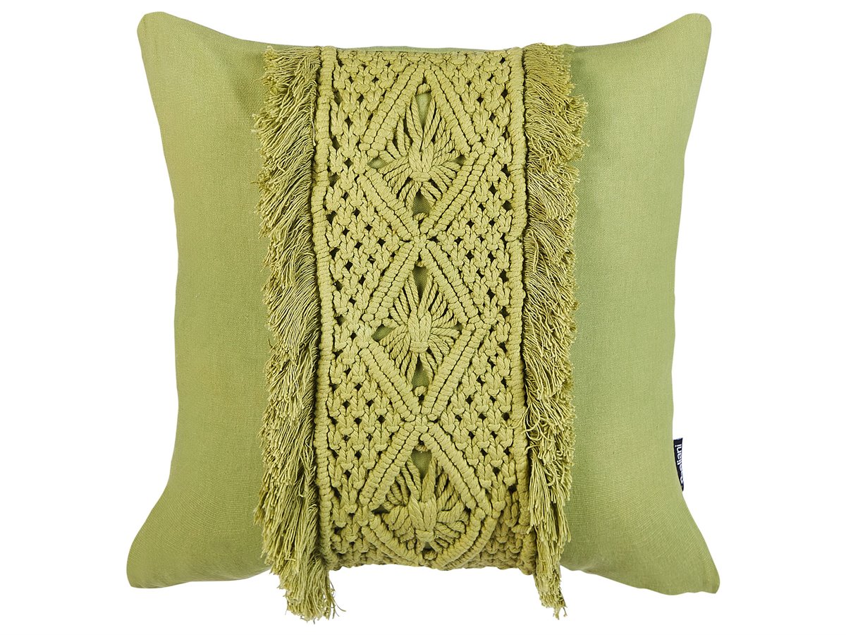 Cojines decorativos con flecos. Complementa tu hogar con nuestro juego de cojines de algodón hechos a mano, con intrincados frentes de macramé y alegres flecos. Quita las fundas sin esfuerzo con las discretas cremalleras incorporadas, combinando comodidad y estilo. Completados con lujosos rellenos, estos cojines añaden un ambiente refinado y acogedor a cualquier habitación.