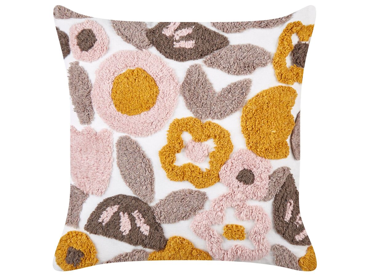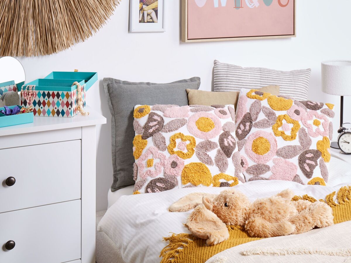 Cojines decorativos con motivo floral. Dale un toque primaveral a tu interior con estos cojines decorativos. Hechos a mano en algodón, presentan formas florales empenachadas en una gama de colores suaves; gracias a ellos, los cojines llamarán la atención y encantarán a todos tus invitados. Además, los accesorios vienen con fundas extraíbles que facilitan su mantenimiento.