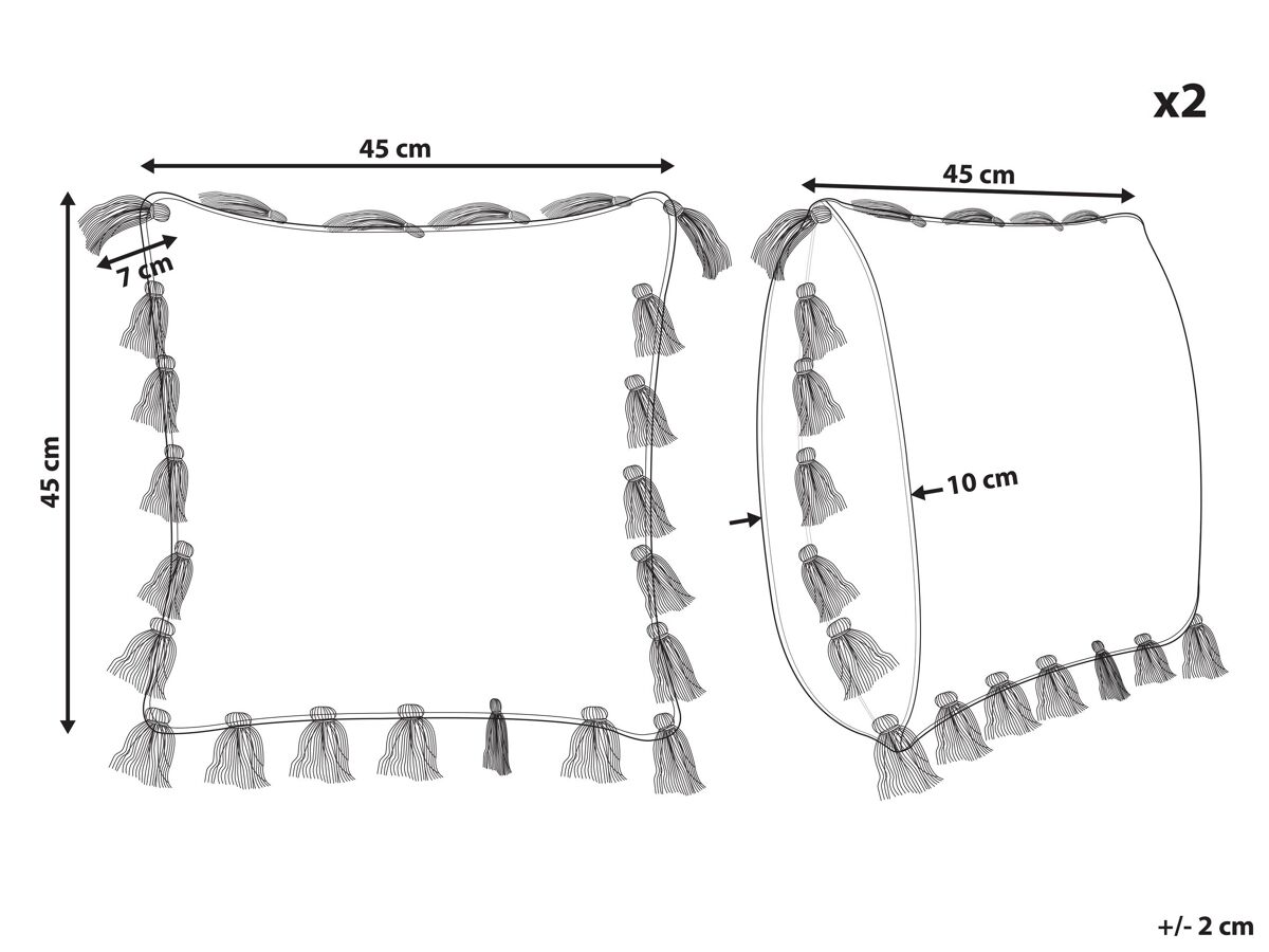 Juego de cojines decorativos. Completa la decoración de tu sala de estar o dormitorio con este conjunto de 2 cojines decorativos. Está fabricado a partir de algodón de alta calidad. Las borlas decorativas combinan bien en cualquier interior de estilo boho. El relleno esponjoso ofrece la máxima comodidad.