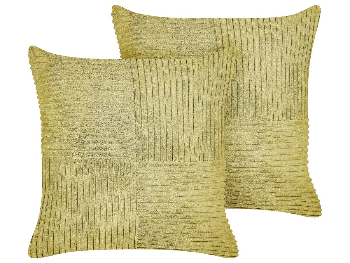 Juego de cojines decorativos. Añade elegancia a tu sala de estar o dormitorio con este conjunto de 2 cojines decorativos. Está fabricado a partir de pana duradera y suave al tacto. La funda viene con una cremallera que facilita la limpieza. Combina bien en cualquier interior de estilo moderno, contemporáneo, retro o boho.