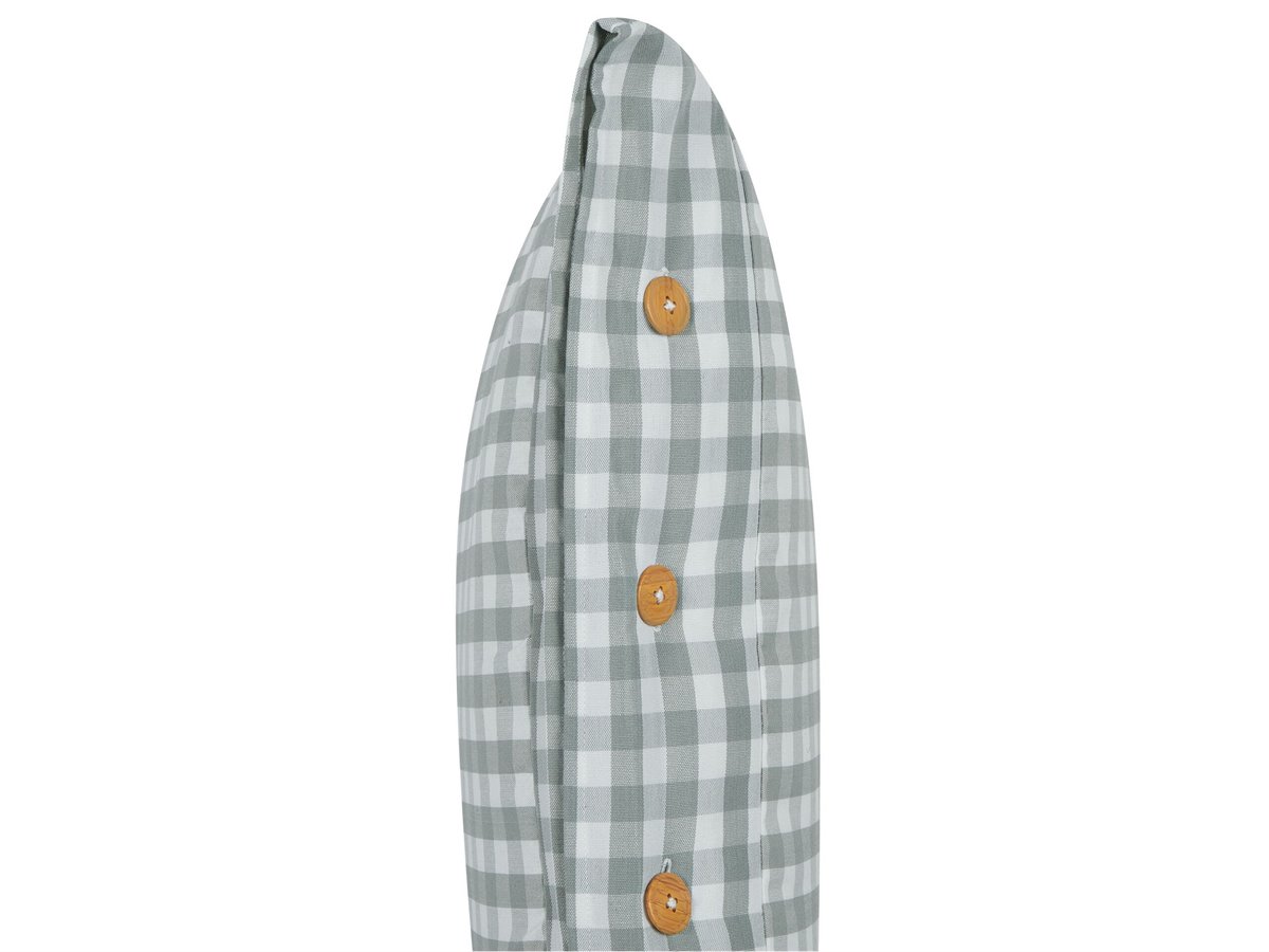 Cojín decorativo con botones. Mejora tu sala de estar con este cojín, diseñado para realzar la decoración con un toque contemporáneo. Confeccionado en resistente tejido de poliéster y algodón, este cojín no solo es suave al tacto, sino que también es fácil de cuidar gracias a su funda extraíble. El cojín está adornado con botones, un detalle que sin duda cautivará la atención de todos tus invitados. Su moderna paleta de colores y su diseño a cuadros lo convierten en un complemento ideal para una amplia gama de estilos de decoración, añadiendo un toque de elegancia moderna a cualquier habitación.