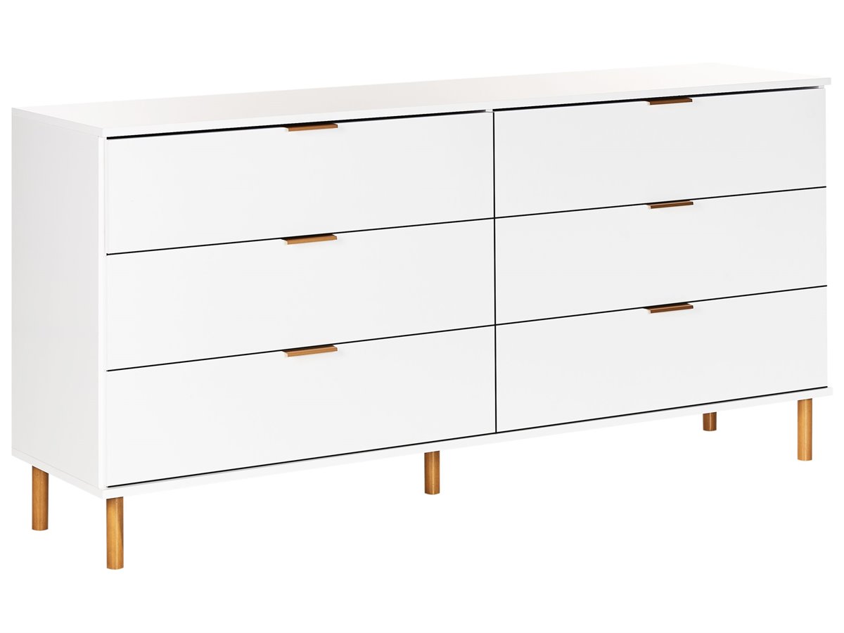 Cajonera con tiradores dorados. Esta elegante cómoda de seis cajones ofrece un amplio espacio de almacenaje gracias a su espacioso diseño, realzado por unos llamativos tiradores dorados que le dan un toque de lujo. Construida con robustas patas de madera maciza, proporciona una excelente estabilidad y durabilidad. Ideal para organizar tus pertenencias, su elegante silueta encaja a la perfección en la decoración de dormitorios tradicionales y contemporáneos. Una pieza funcional pero elegante, que realza sin esfuerzo el encanto de tu espacio.
