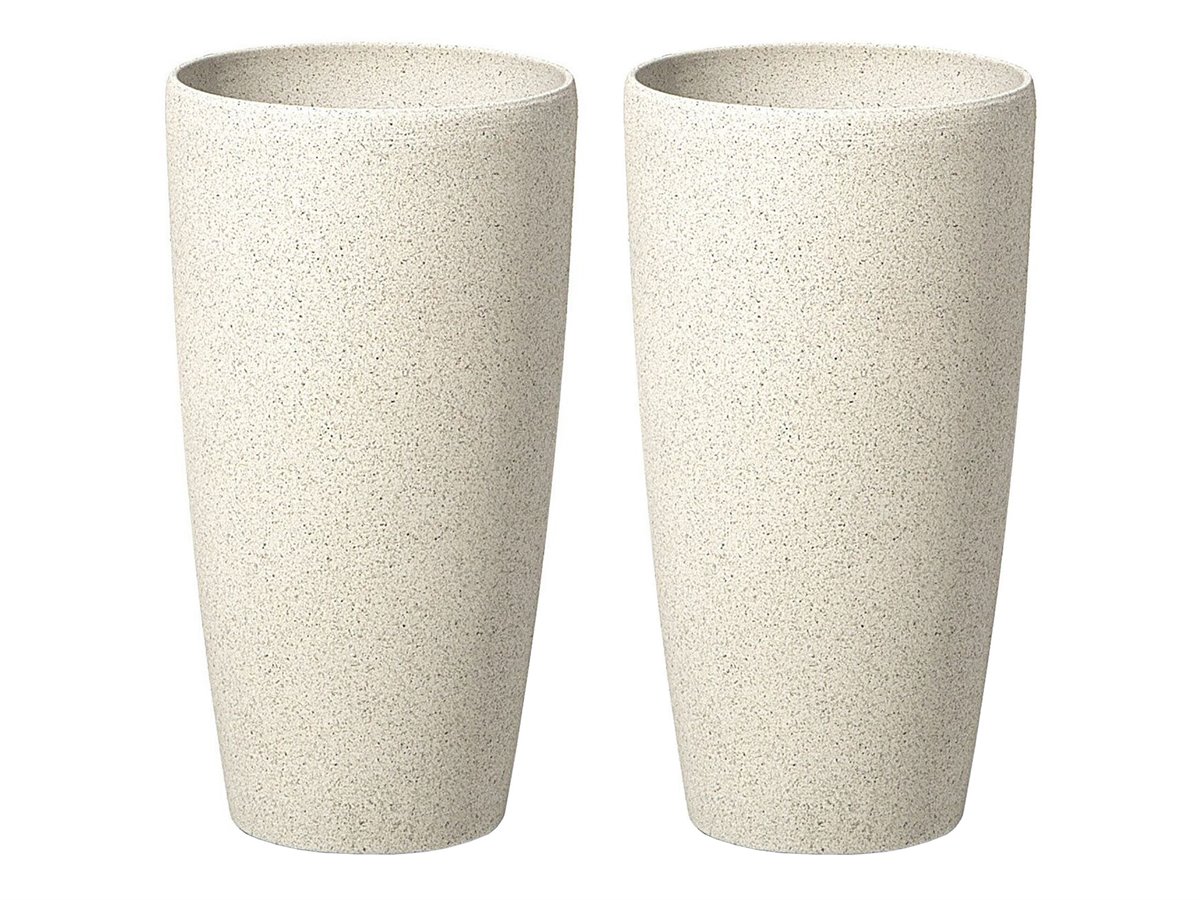 Juego de maceteros para exterior. Añade un toque de distinción a tu interior o exterior con este conjunto de 2 macetas. Está fabricado a partir de una mezcla de piedra, poliresina y fibra de vidrio resistente a los rayos UV. Resiste condiciones climáticas adversas. Luce bien de forma individual o como parte de un juego.