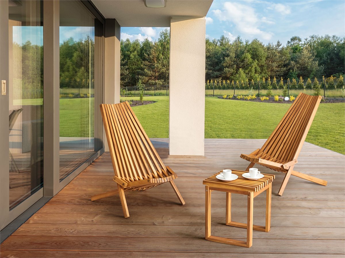 Juego de mesa y sillas de exterior. Mejora tu lugar de relax con este conjunto de balcón, que incluye dos sillas plegables y una mesita baja, todo ello fabricado en madera de acacia natural. Los nudos visibles de la madera añaden un encanto rústico, mientras que el diseño moderno garantiza tanto el atractivo estético como la funcionalidad práctica. Ideal tanto para interior como para exterior, este conjunto combina estilo y versatilidad para realzar cualquier ambiente. Disfruta de la elegancia y durabilidad de estas piezas bellamente elaboradas que combinan a la perfección forma y funcionalidad.