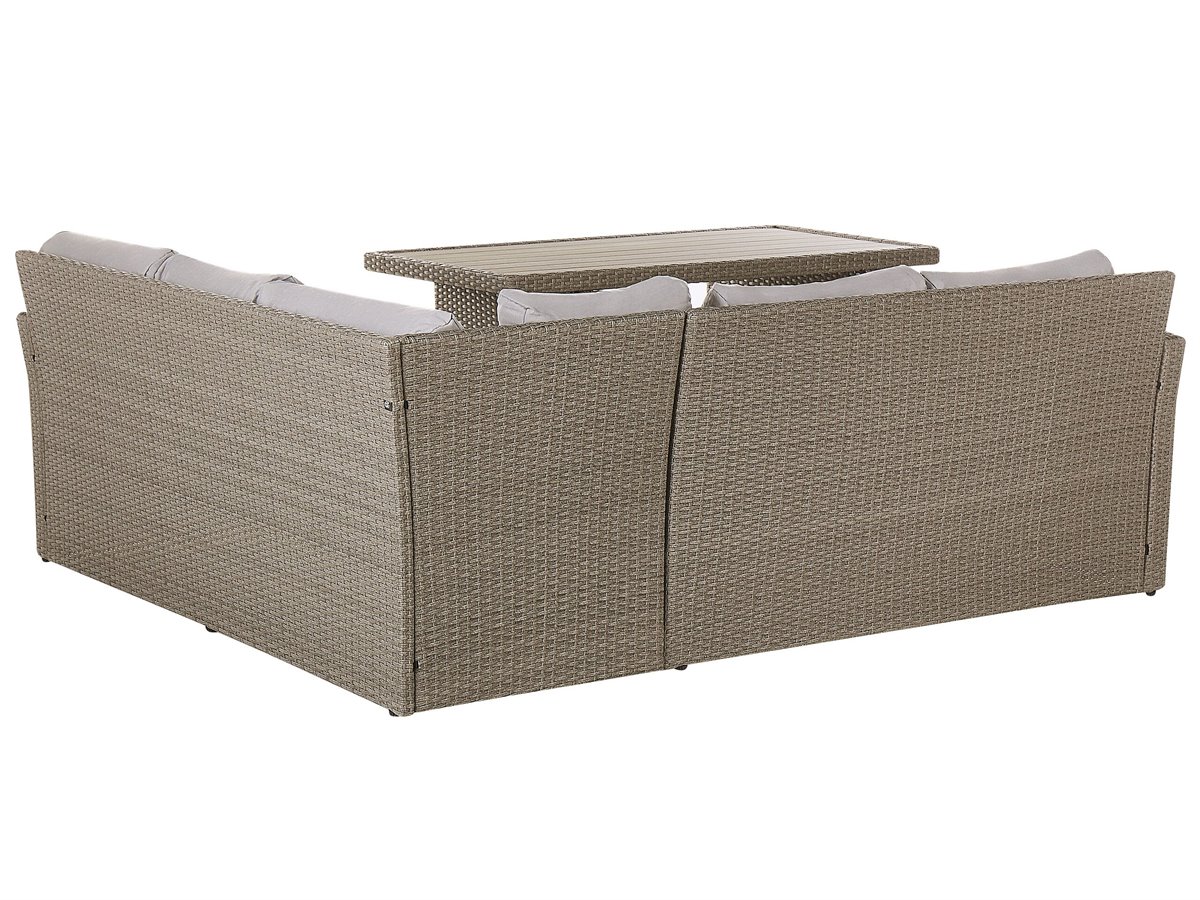 Ventajas: Ideal para grandes reuniones con amigos y familiares, Diseño atemporal, Materiales de calidad, Resistencia UV 5 (ISO 105-B02), Tejido sólido, Fundas de cojines con costuras ocultas y cremalleras