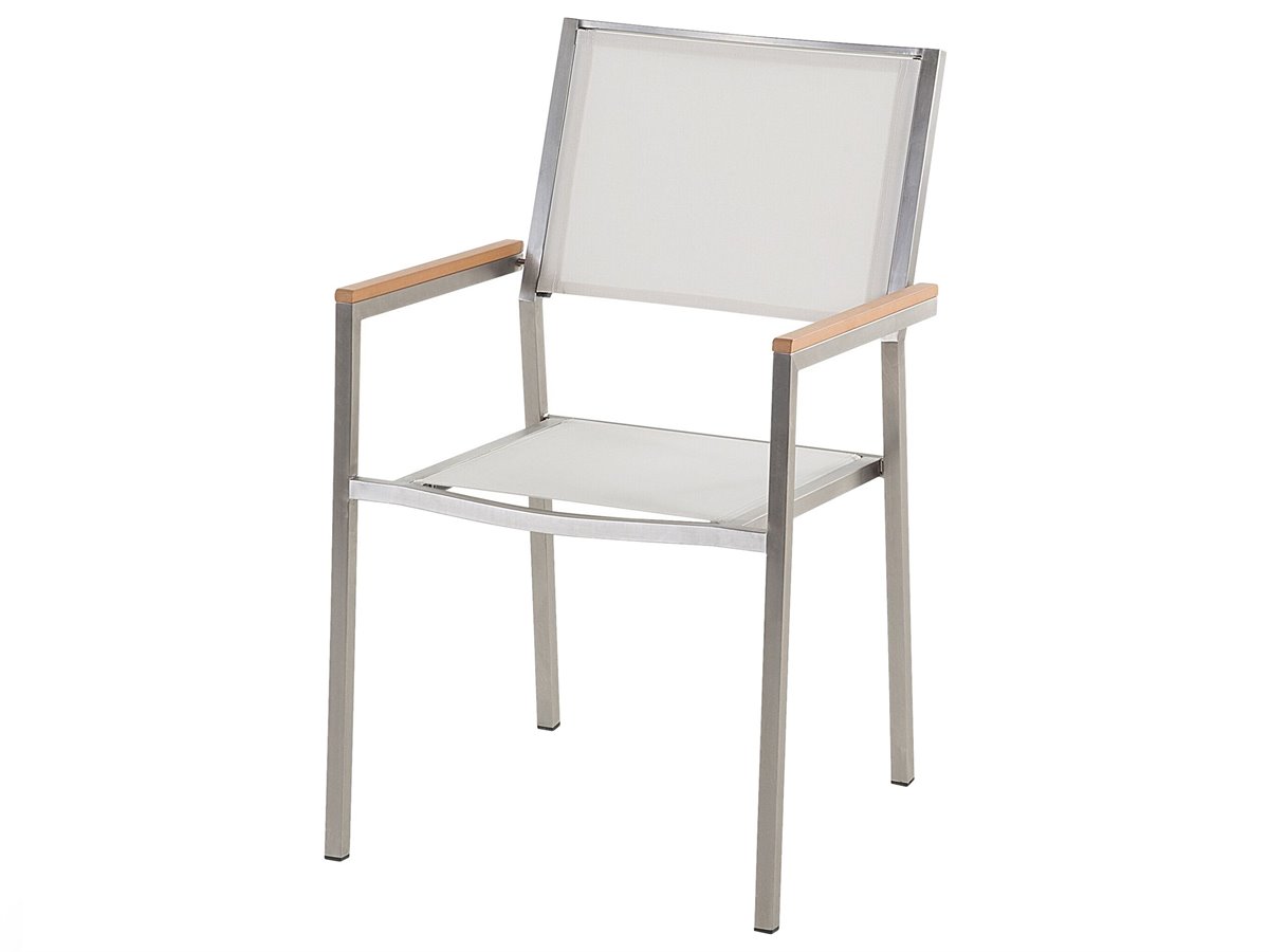 Ventajas: Para patio y jardín de estilo moderno, Resistente a las manchas, Resistencia UV 4 (ISO 105-B02), Material impermeable y muy fácil de conservar, Robusto marco resistente a la corrosión, Montaje muy sencillo, Apilable para un almacenaje mejor