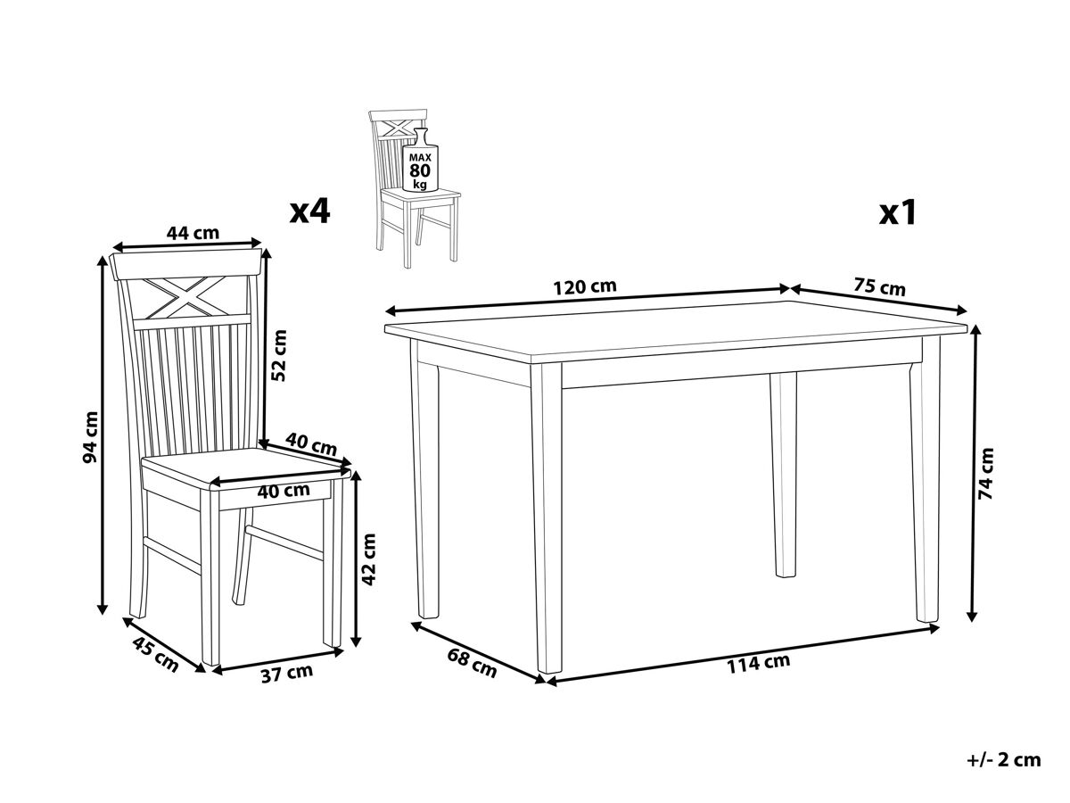 Capacidad de peso de la silla: 80 kg