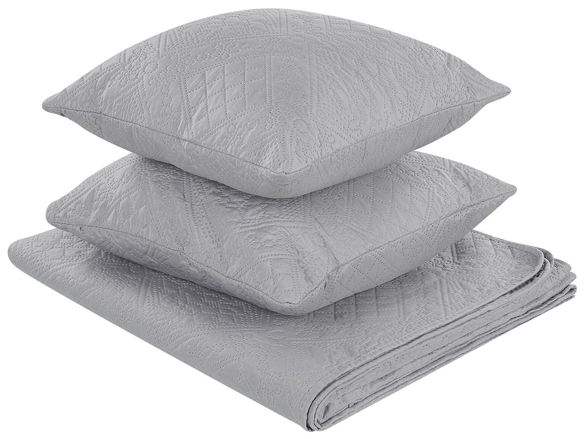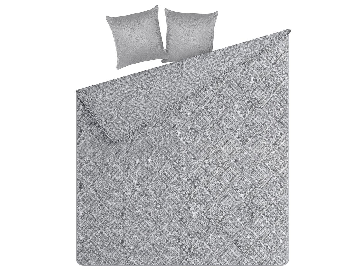 Manta decorativa con almohadas. Añade elegancia a tu dormitorio con esta colcha. Está fabricada a partir de tela de poliéster resistente y de alta calidad. El patrón geométrico con motivos florales en relieve llama poderosamente la atención. Viene con un juego de cojines de relleno suave.