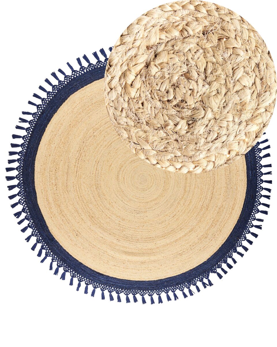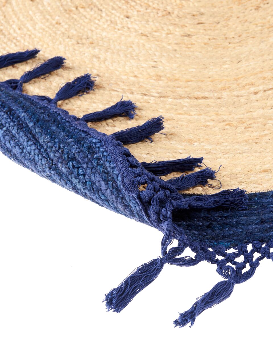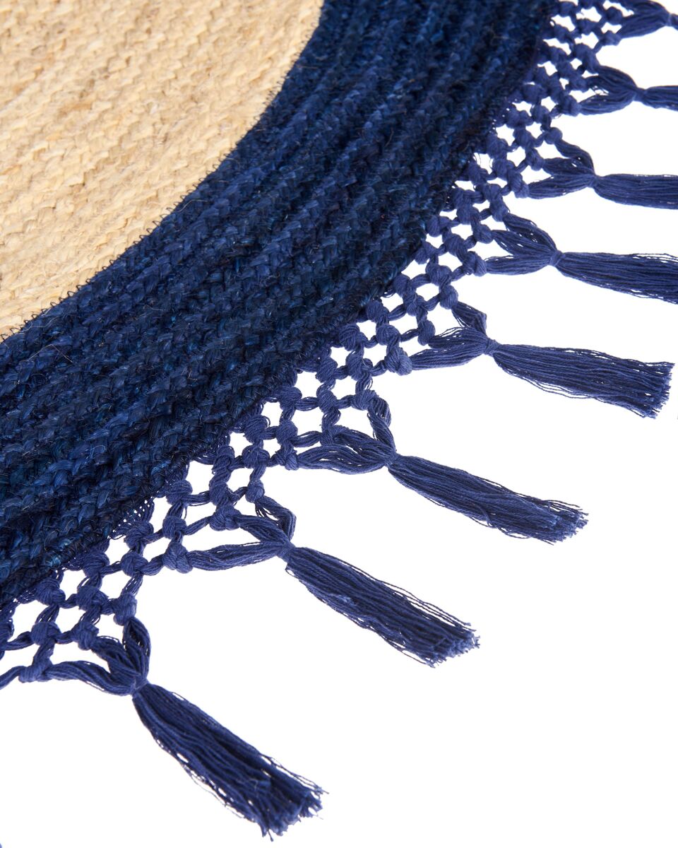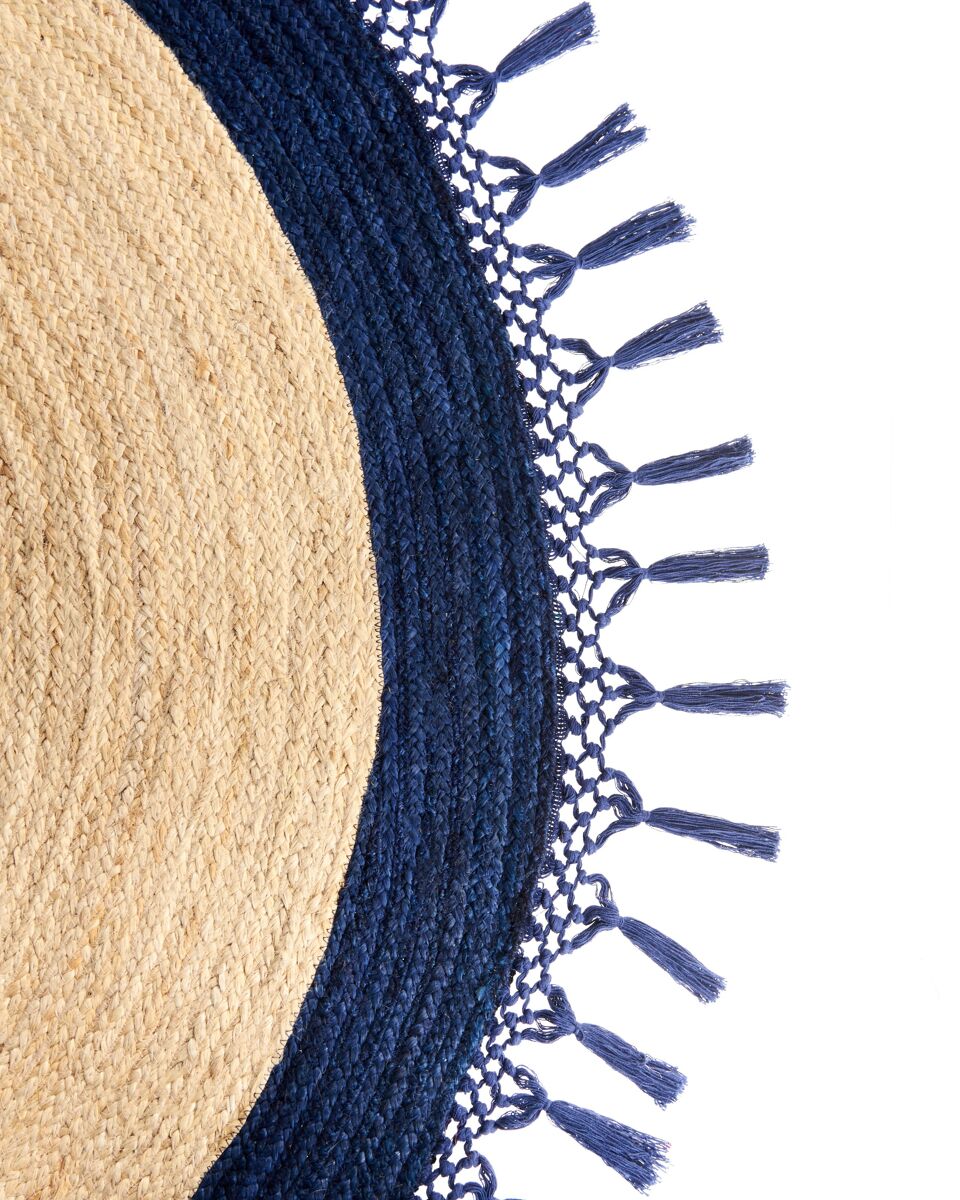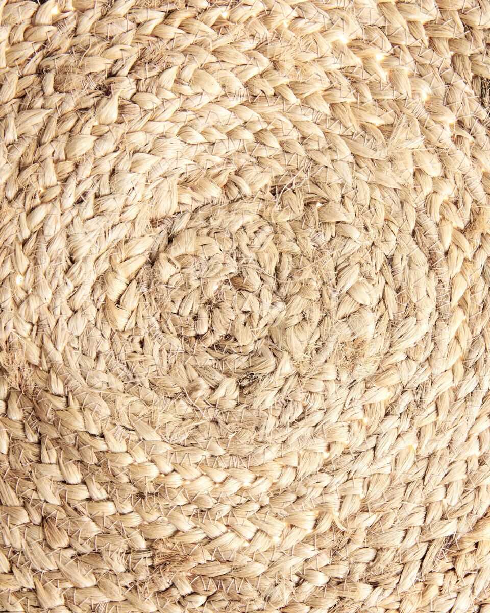 Alfombra redonda artesanal. Eleva tu interior con esta alfombra redonda de yute y añade un toque de calidez y carácter que resalta en cualquier habitación. Elaborada a mano con una mezcla de yute y algodón, es resistente y de gran calidad. Las texturas y los tonos naturales de la alfombra crean una fusión que complementa tanto el estilo tradicional como el boho.