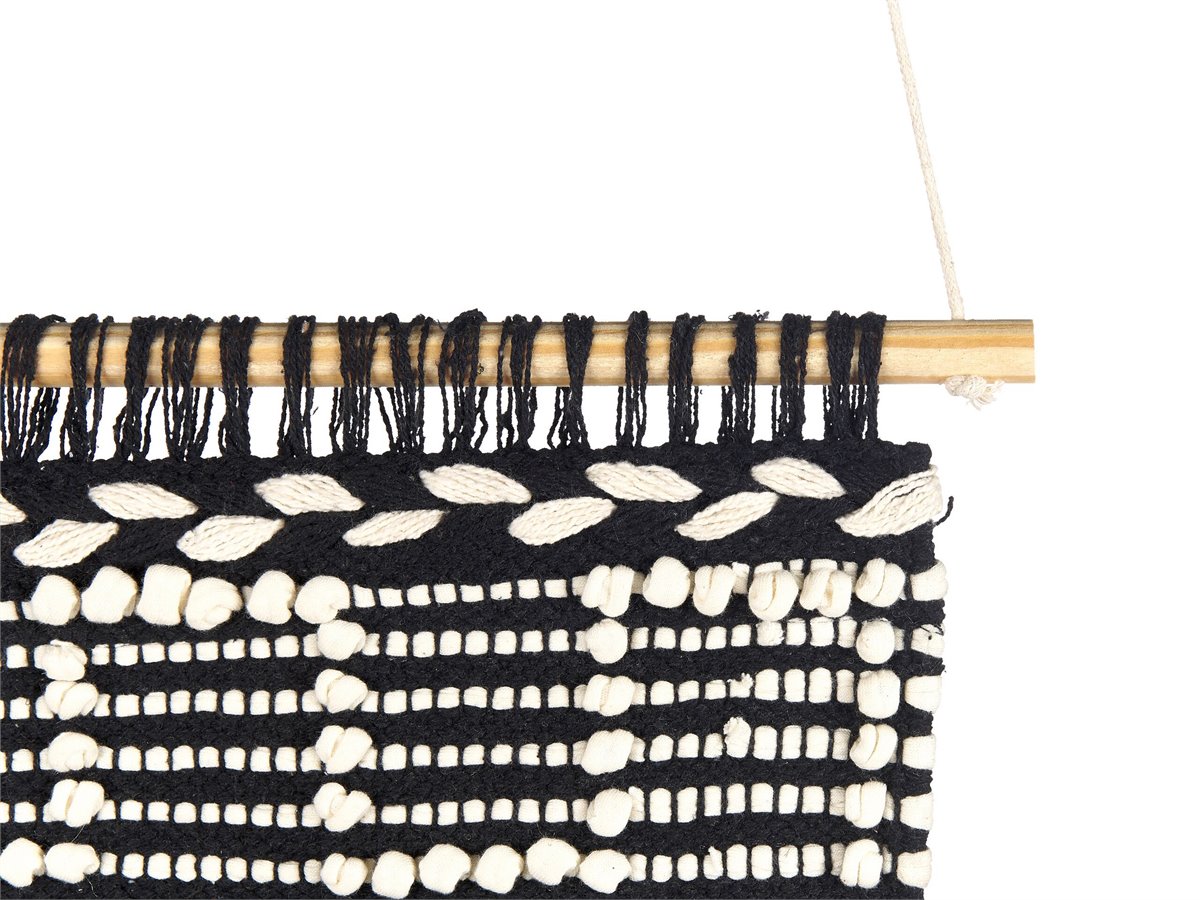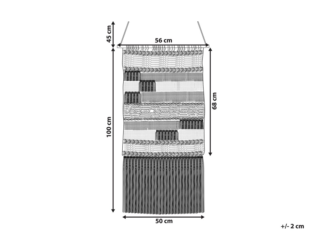 Arte de pared. Añade un toque acogedor a tu sala de estar o dormitorio con esta decoración de pared. Está fabricada a mano a partir de algodón de alta calidad y suave al tacto. El patrón geométrico y las borlas decorativas aportan un aire de distinción. Combina bien en cualquier interior de estilo boho o tradicional.