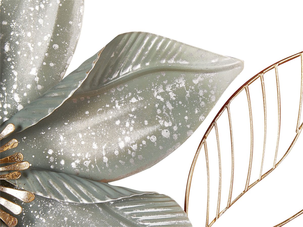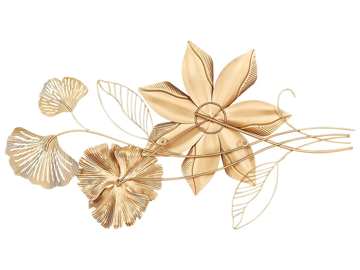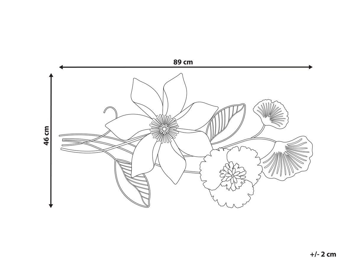 Decoración de metal con motivo floral. Fabricado en metal duradero y fácil de limpiar, este adorno de pared muestra un delicado diseño floral en colores sutiles con toques dorados. Sus detalles únicos y brillantes lo convierten en un complemento perfecto para interiores modernos y glamurosos, iluminando al instante cualquier habitación. Esta pieza combina elegancia y suavidad, y gracias a los ganchos de la parte trasera, se puede colgar fácilmente en la pared, realzando tu espacio con un toque refinado.