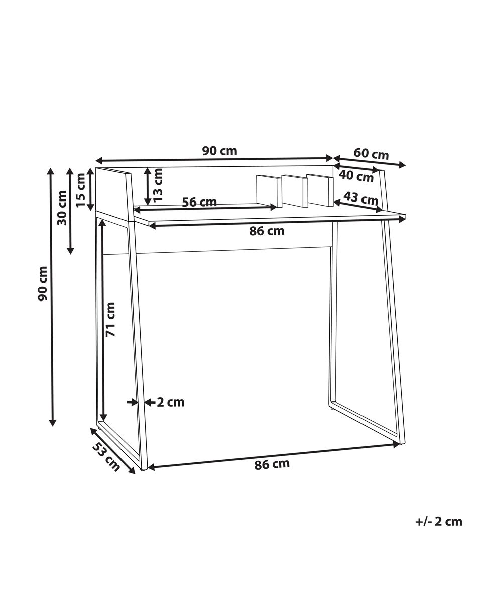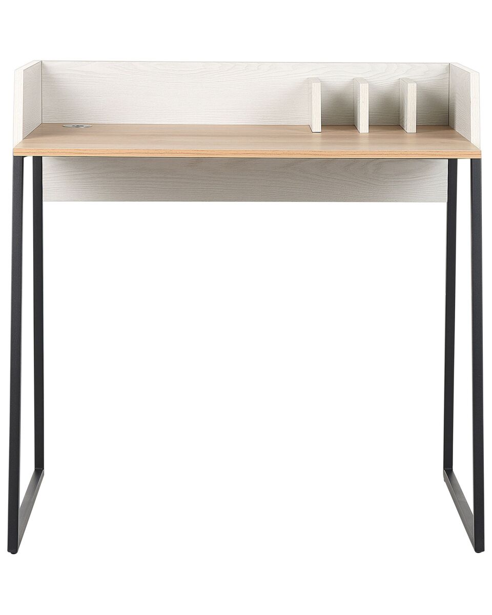 Escritorio para oficina. Añade a tu área de estudio este escritorio de tamaño compacto. Está fabricado a partir de MDF resistente y de alta calidad. La estructura de metal y el panel posterior proporcionan la máxima estabilidad. Los orificios y los distintos compartimentos permiten organizar los documentos, carpetas o material de oficina.