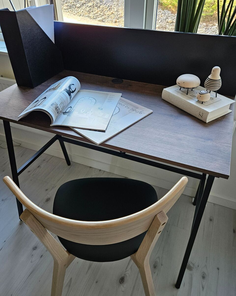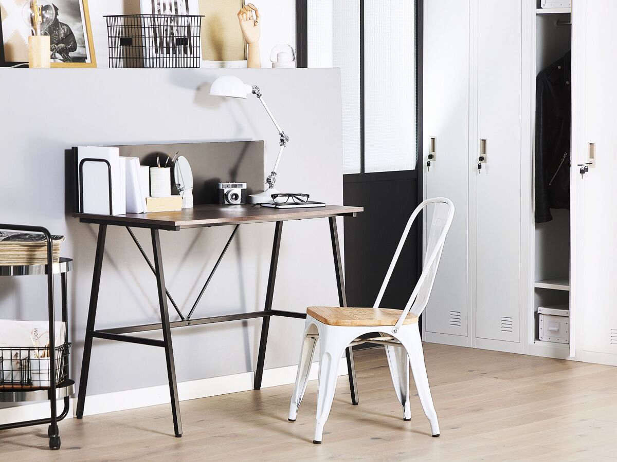 Escritorio para oficina. Añade a tu oficina en casa o habitación infantil este escritorio de diseño moderno. Está fabricado a partir de tablero de partículas de alta calidad de tonalidad semejante a la madera. La parte posterior de metal aporta un toque industrial al diseño. Su forma compacta encaja bien en un espacio de dimensiones reducidas.
