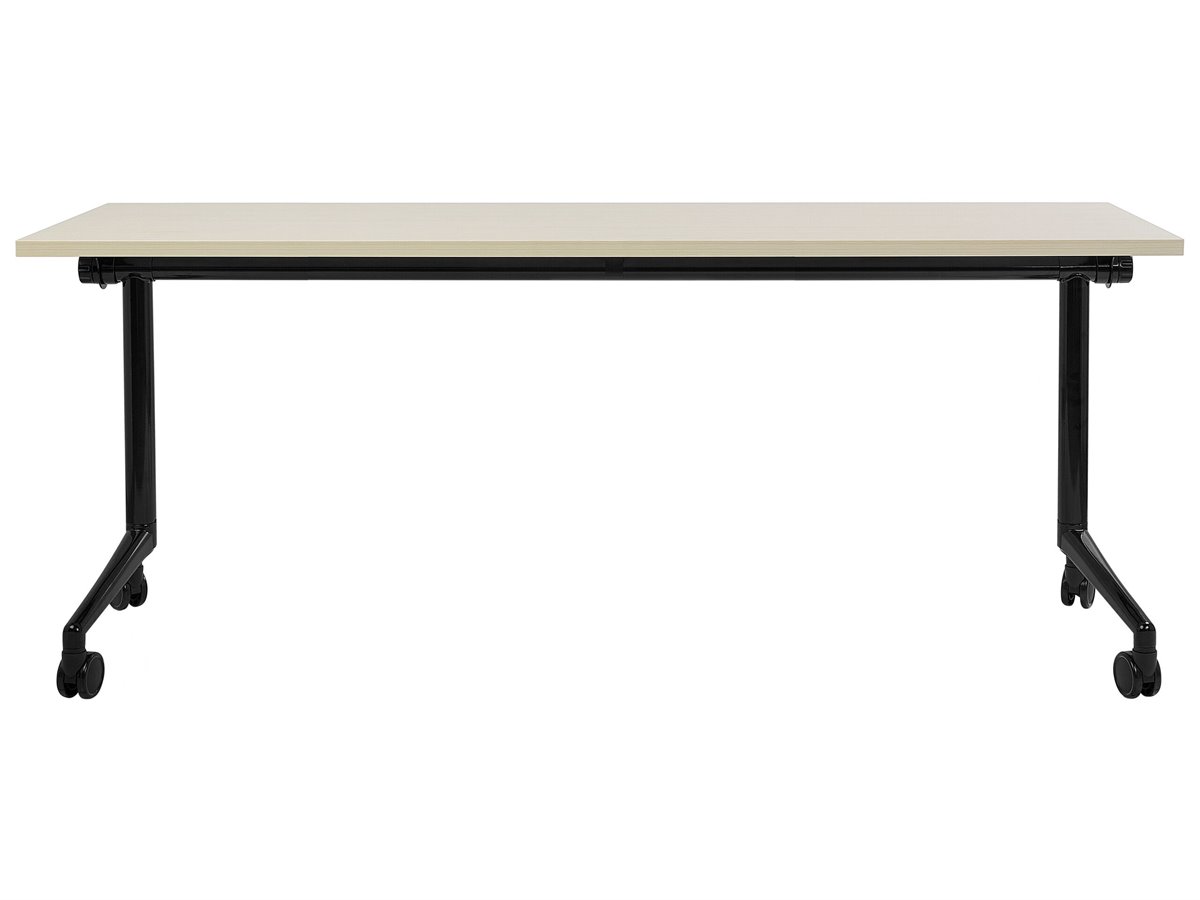 Escritorio móvil con estructura metálica. Mejora tu espacio de oficina con la combinación perfecta de practicidad y comodidad con este escritorio plegable. Su parte superior plegable permite guardarlo fácilmente cuando no se utiliza, lo que lo convierte en una excelente opción para espacios reducidos. El escritorio está equipado con ruedas bloqueables, que garantizan tanto la estabilidad como la movilidad, para que puedas moverlo y asegurarlo cuando lo necesites. Ideal para oficinas domésticas, esta pieza ofrece una solución de espacio de trabajo elegante y funcional.