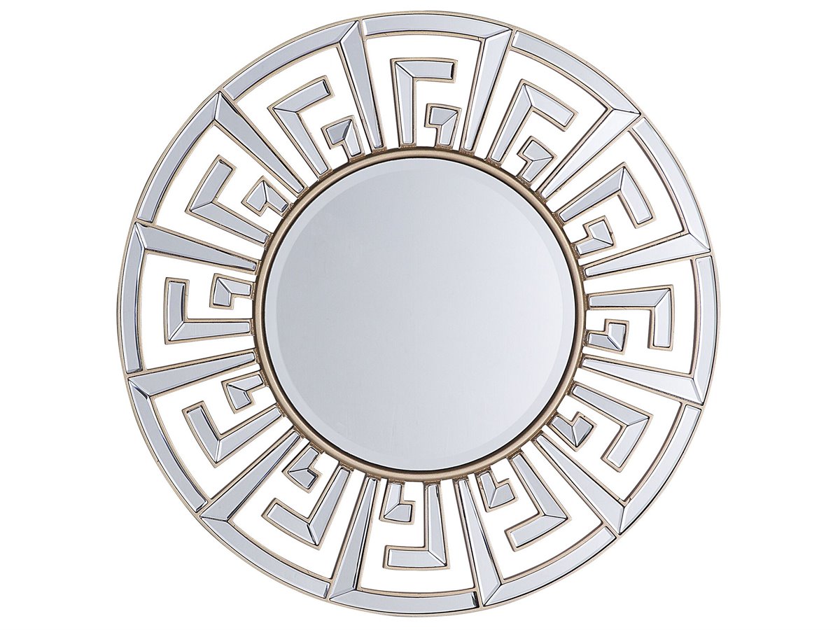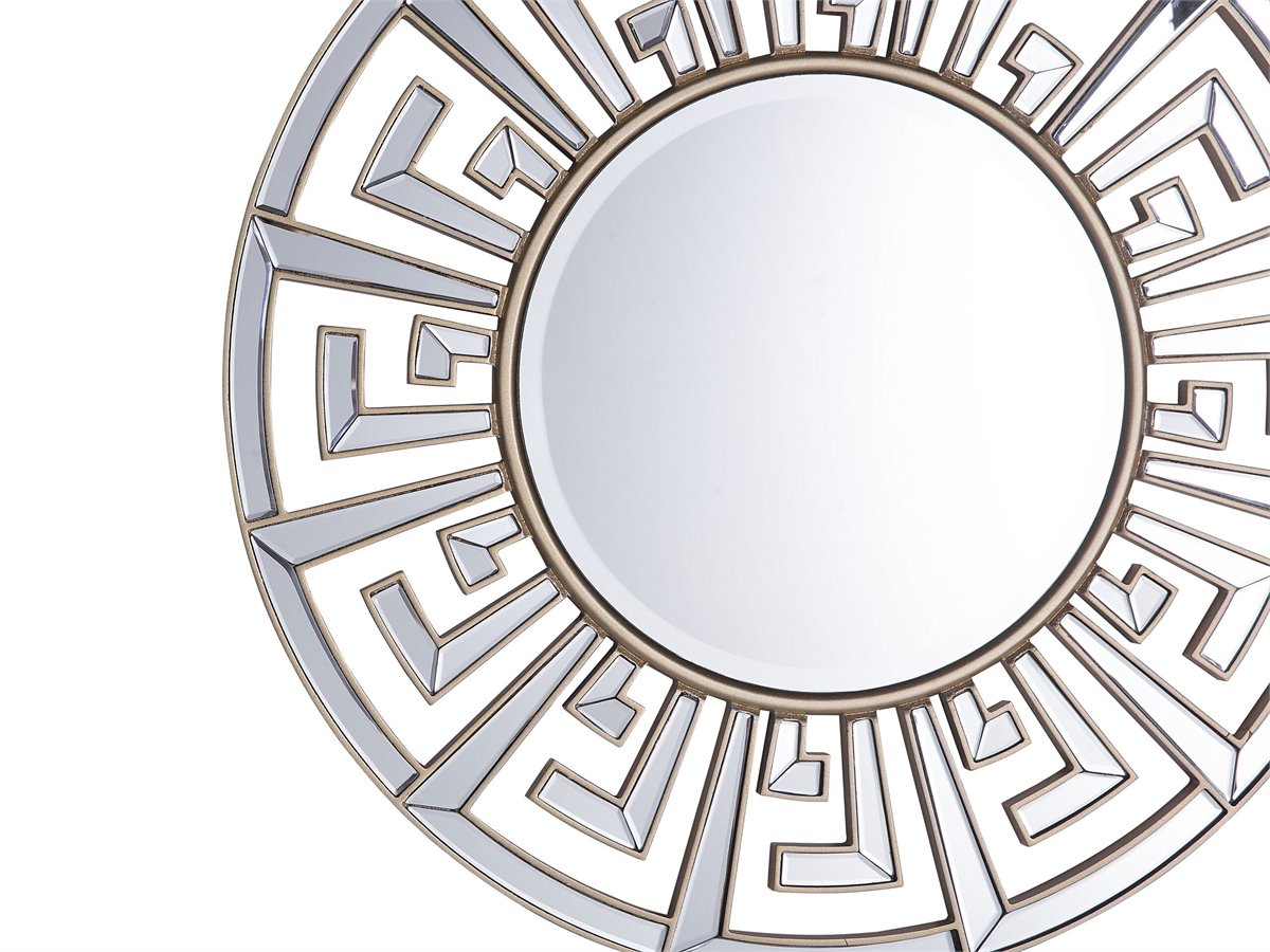 Decorativo espejo de pared con un marco dorado. Añade glamour a tu sala de estar, dormitorio o recibidor con este espejo de pared. El marco con patrón decorativo de acabado metálico llama poderosamente la atención. Combina bien en cualquier interior de estilo clásico.