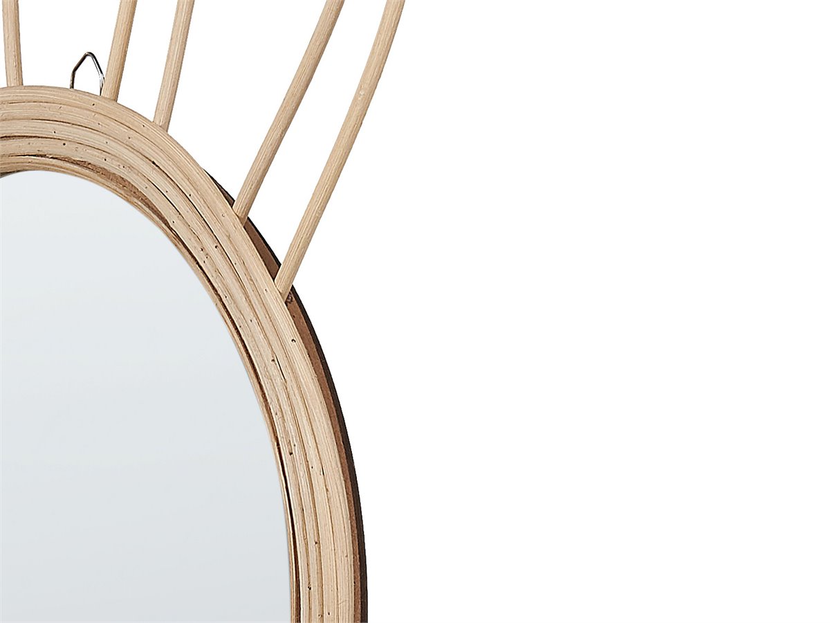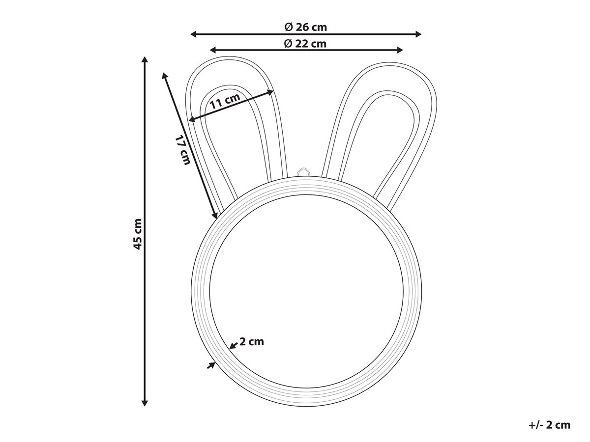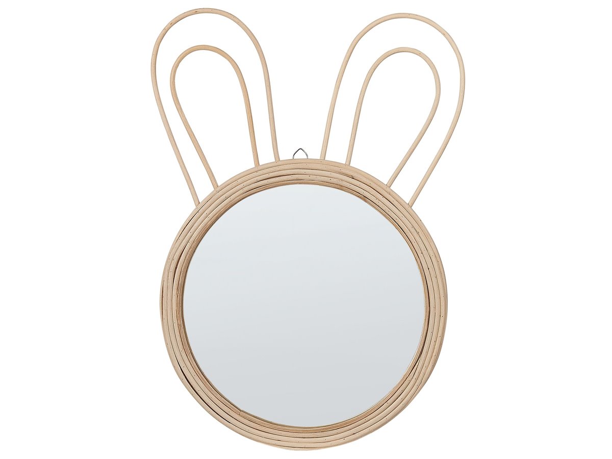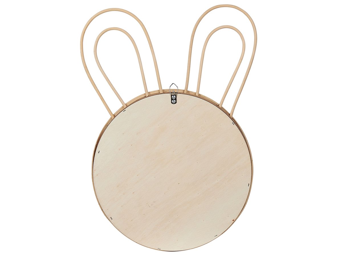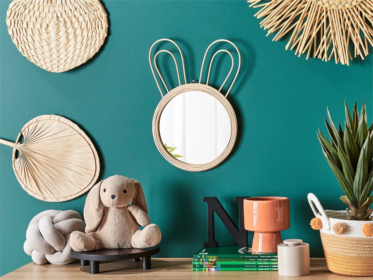 Espejo decorativo. Añade este espejo de pared a la decoración de tu interior. Está fabricado a partir de ratán de alta calidad. El motivo decorativo con forma de oreja de conejo encaja bien en cualquier habitación infantil. El gancho incluido en la parte posterior facilita la instalación.