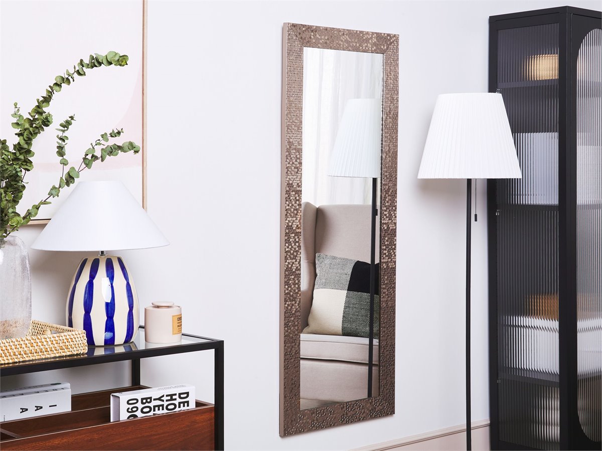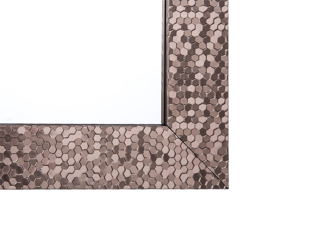 Elegante espero con marco decorativo. Añade funcionalidad y glamour a tu interior con este espejo de pared. Está fabricado a partir de material sintético ecológico de alta calidad. El patrón de panal brillante combina bien en cualquier espacio de estilo moderno, escandinavo o tradicional. Puedes colgarlo horizontal o verticalmente.