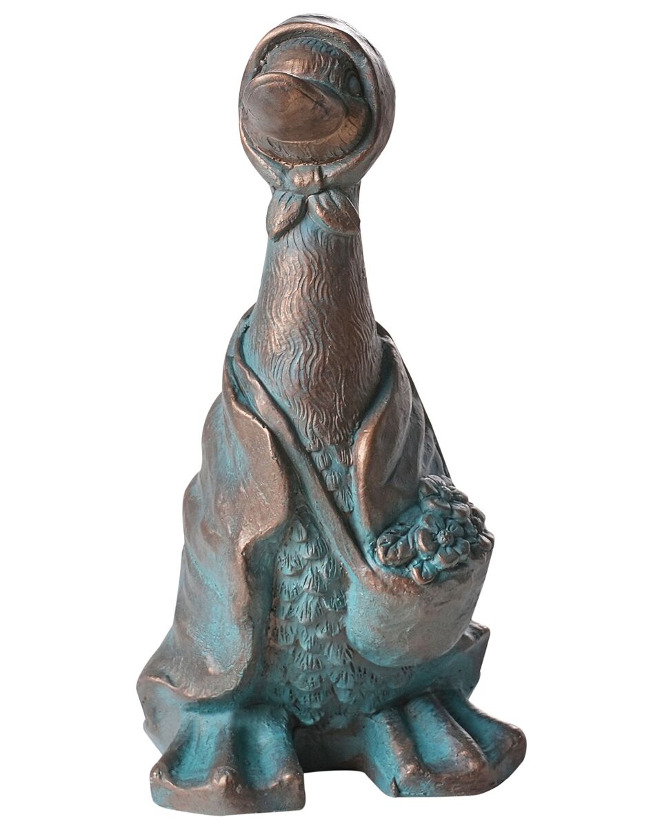 Figura en forma de pato. Aporta un toque divertido a tu jardín con esta encantadora figurita con forma de pato. Su bonito diseño y sus llamativos detalles la convierten en el complemento perfecto para cualquier espacio exterior. Hecha a mano con materiales duraderos y con un efecto desgastado, da un aire rústico, tanto si la colocas sobre el césped como si la expones en el centro de tu jardín.