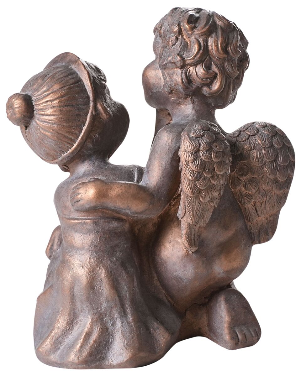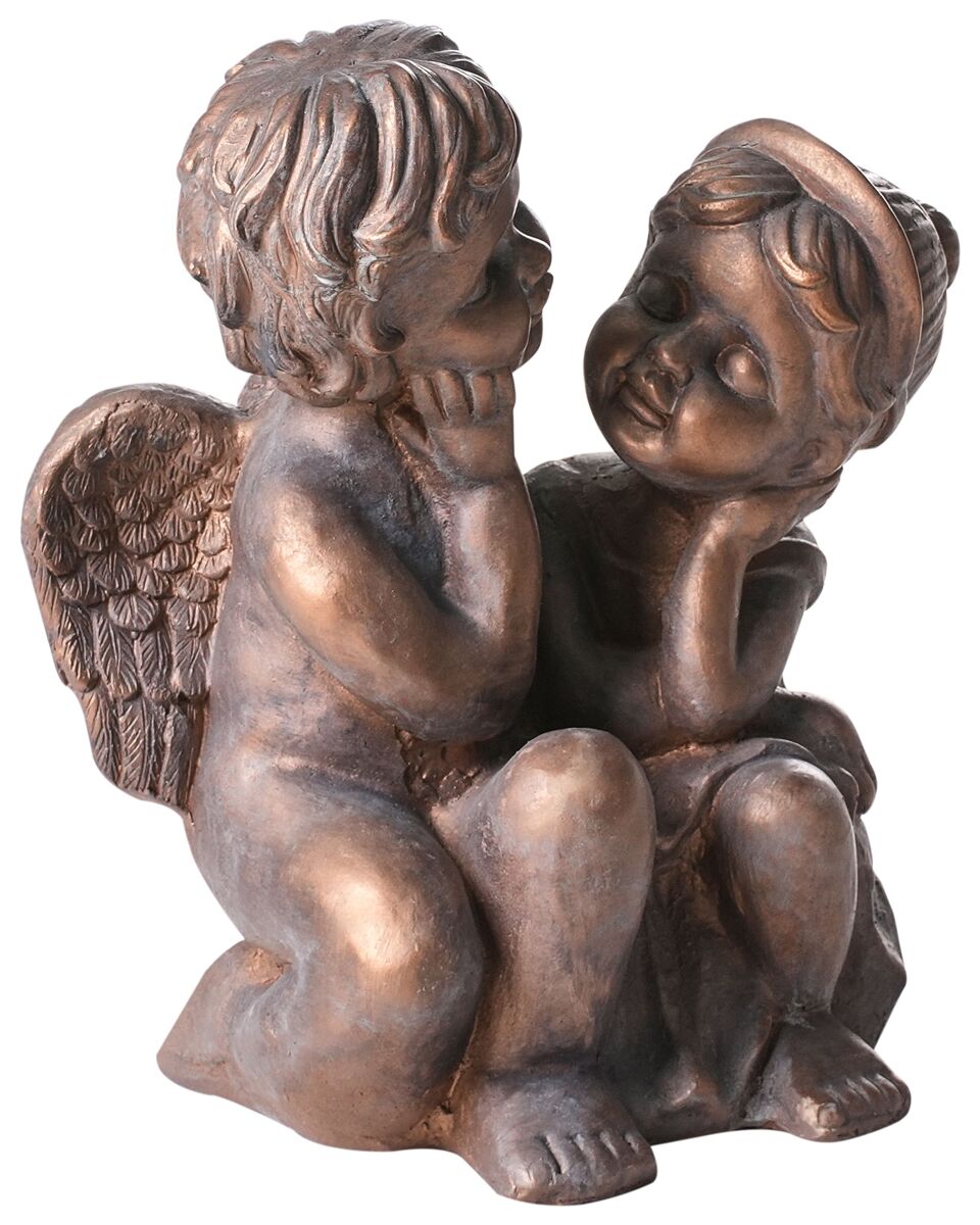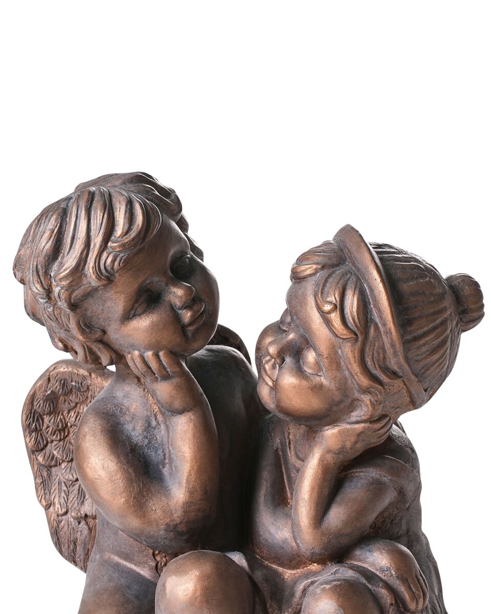 Figura en forma de ángeles. Esta adorable figurita de ángeles es el complemento perfecto para cualquier espacio exterior. Hecha a mano con materiales duraderos y acabada con un efecto desgastado, su sutil brillo añade carácter a cualquier entorno. Colocada junto a plantas y rocas, aporta un encanto divertido y elegante a tu decoración.